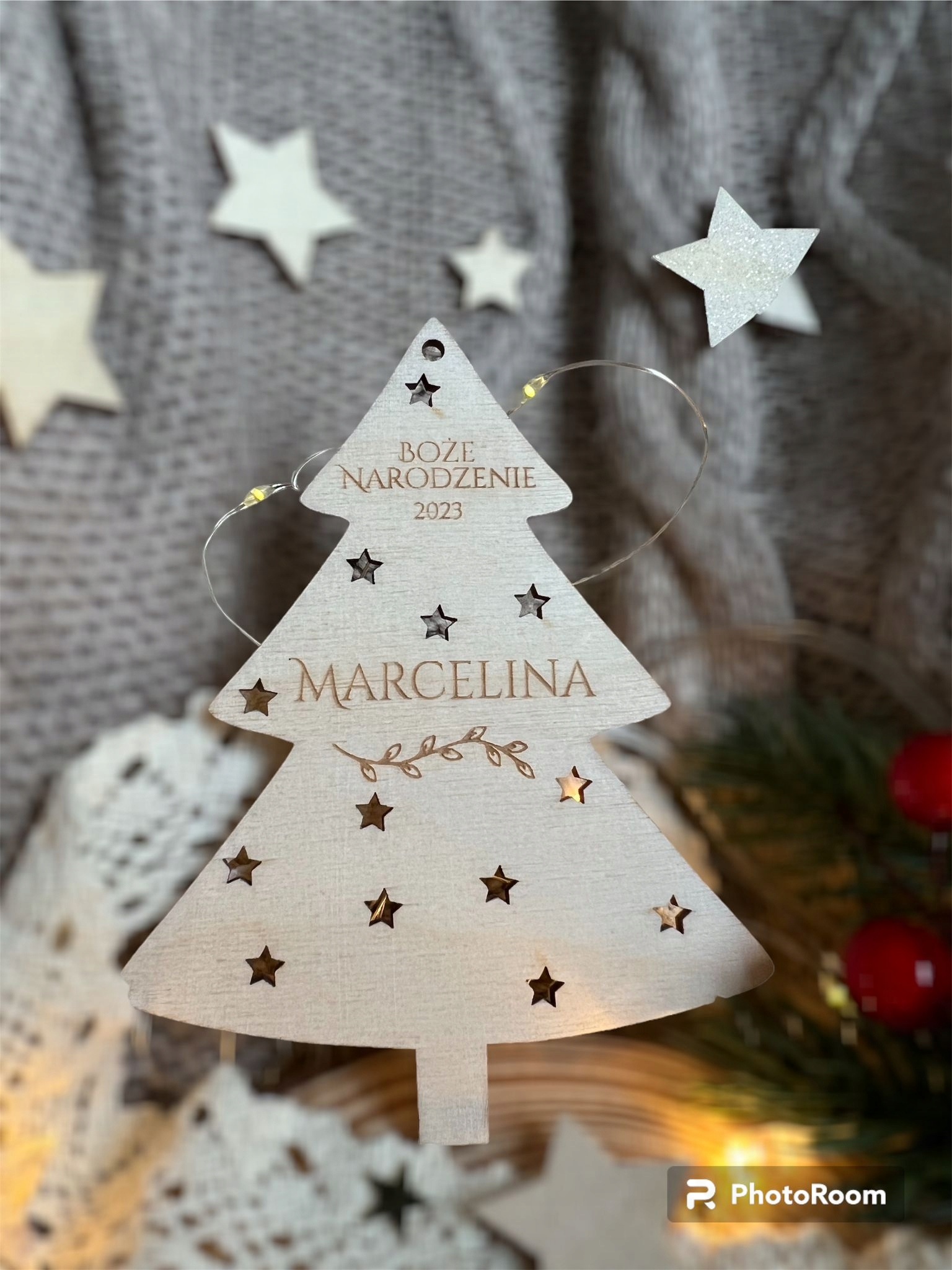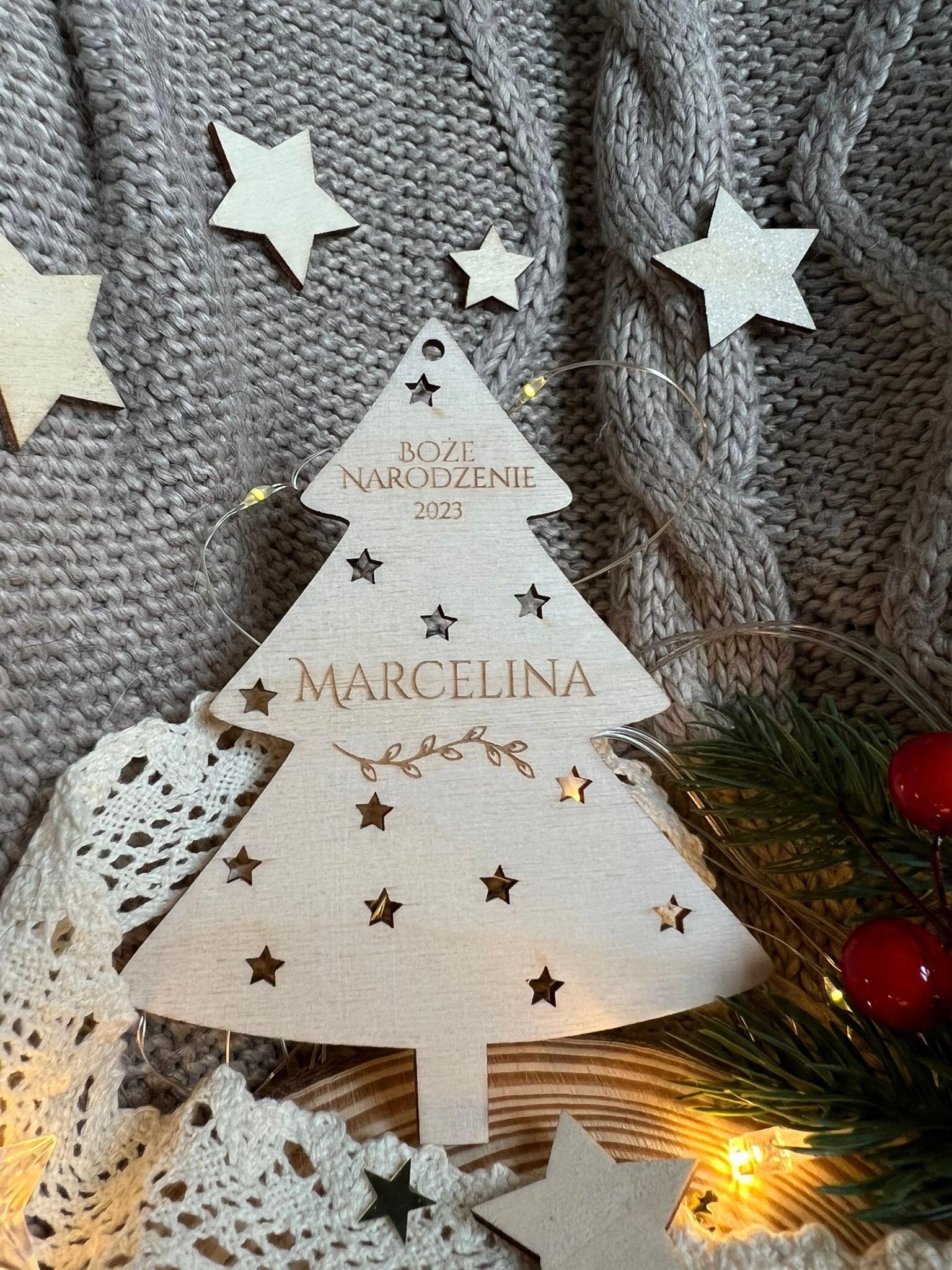 CHOINKA DREWNIANA AŻUROWA IMIĘ BOMBKA NR3