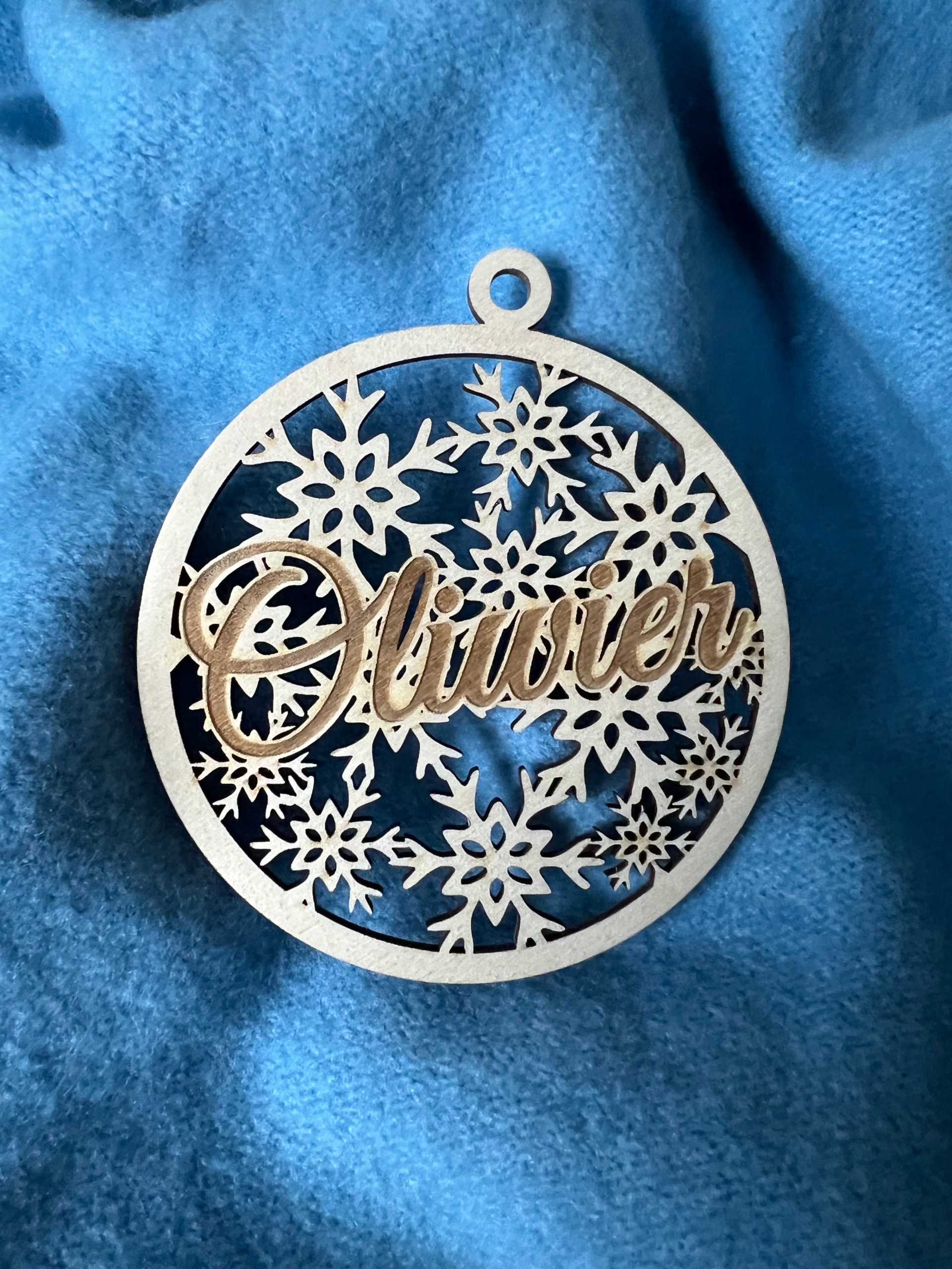 DREWNIANA BOMBKA Z IMIENIEM ŚNIEŻYNKI