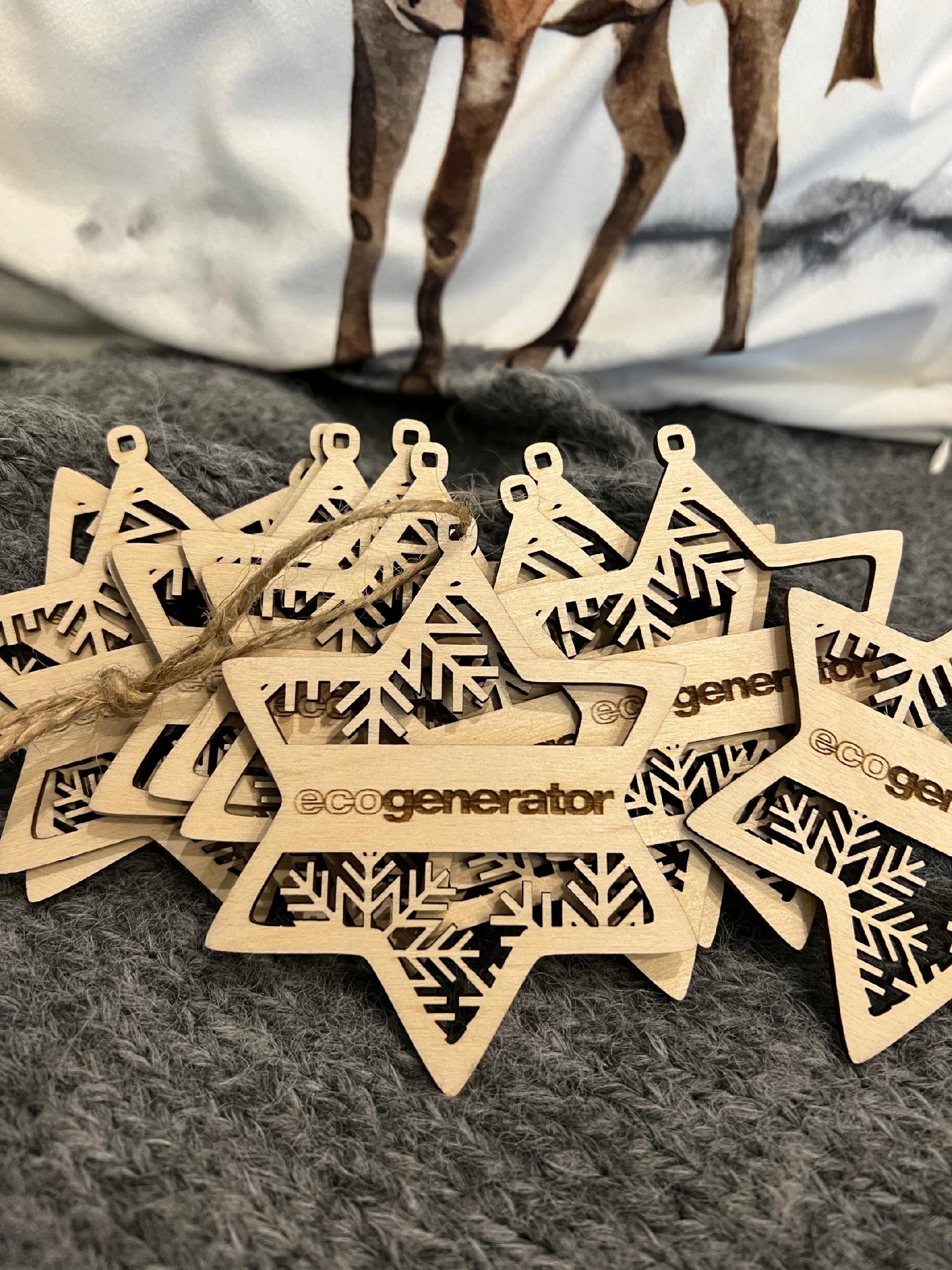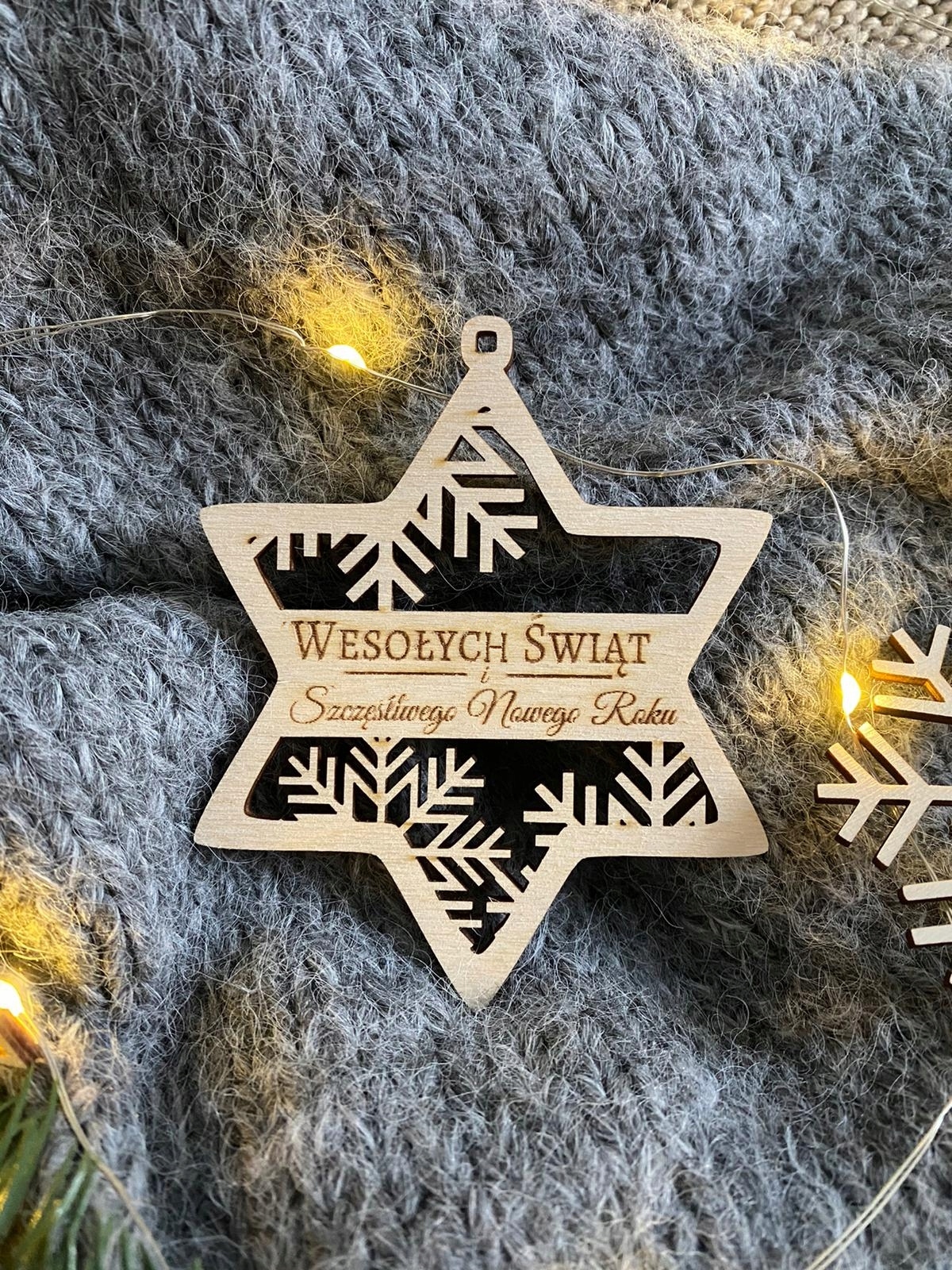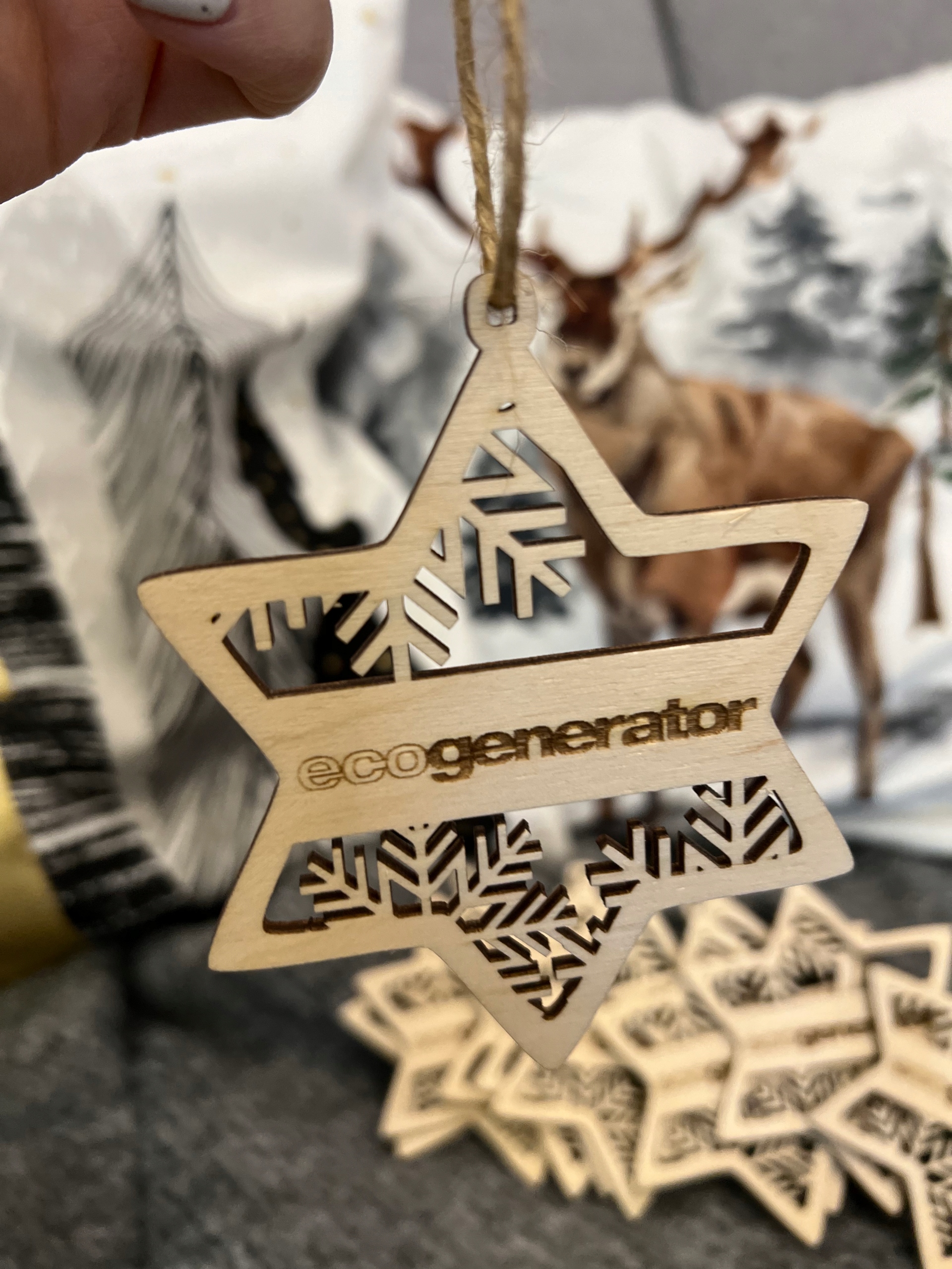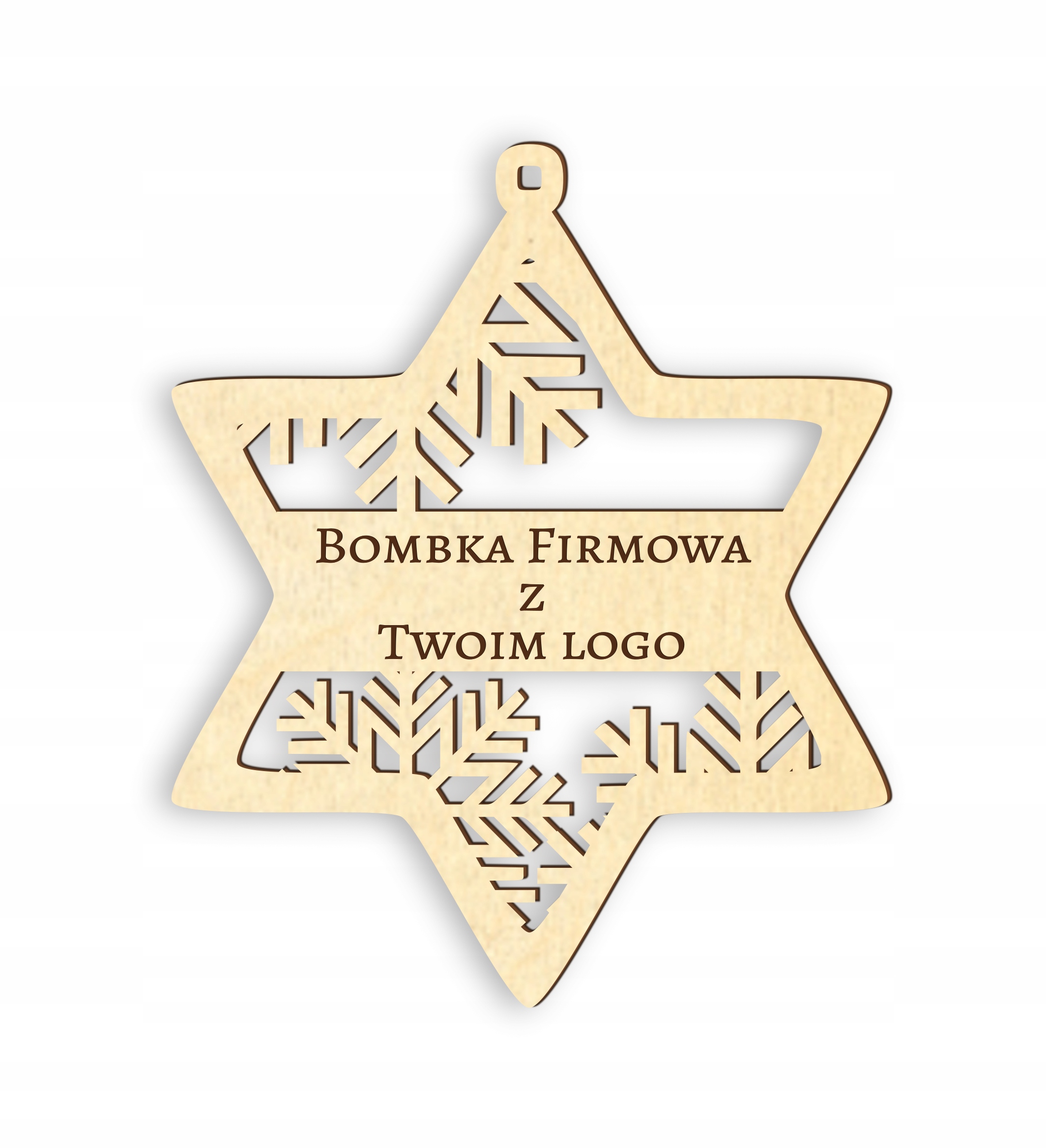 DREWNIANA BOMBKA W KSZTAŁCIE GWIAZDY Z GRAWEROWANYM LOGO TWOJEJ FIRMY