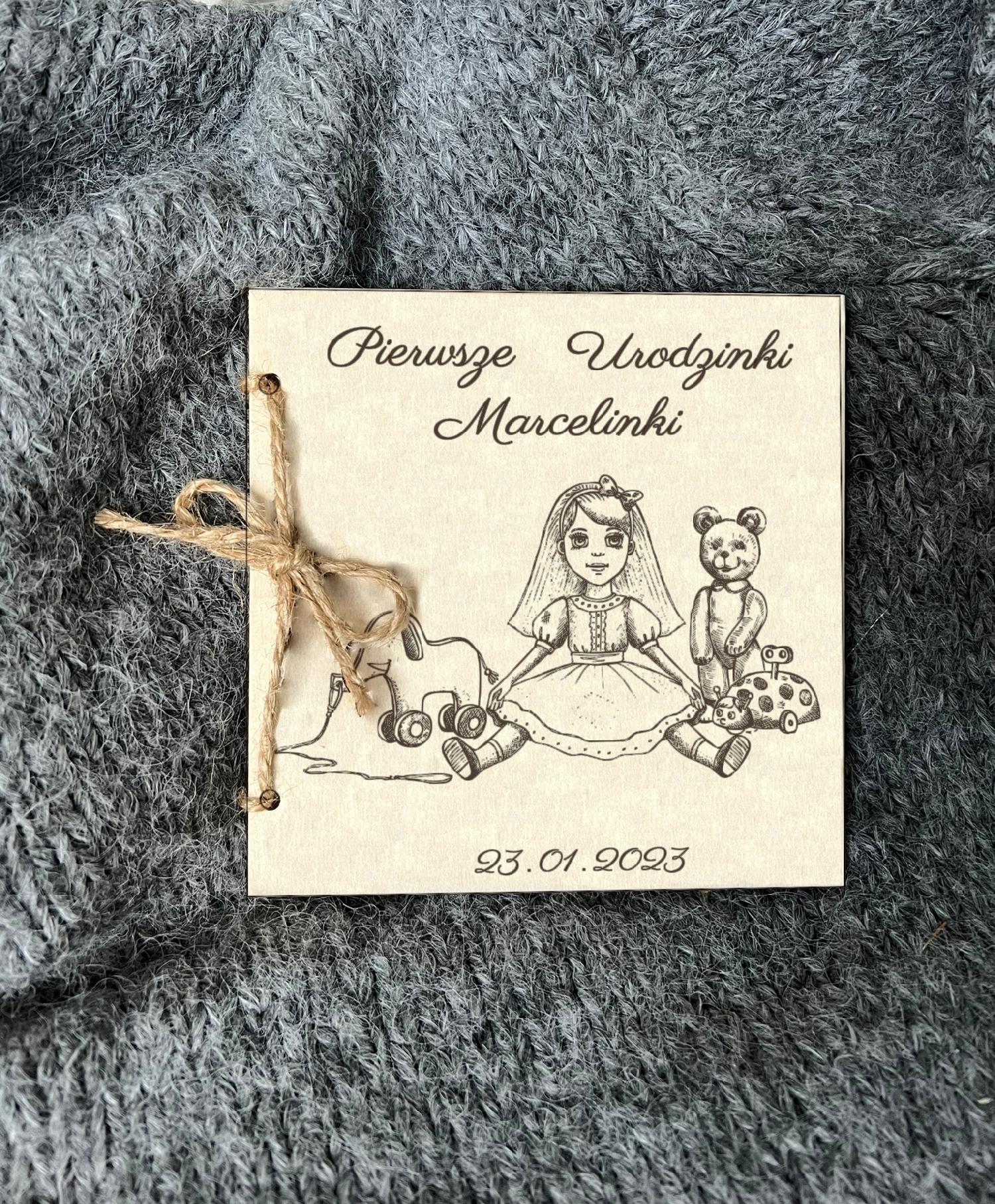 Drewniana Kartka na roczek z życzeniami Urodziny