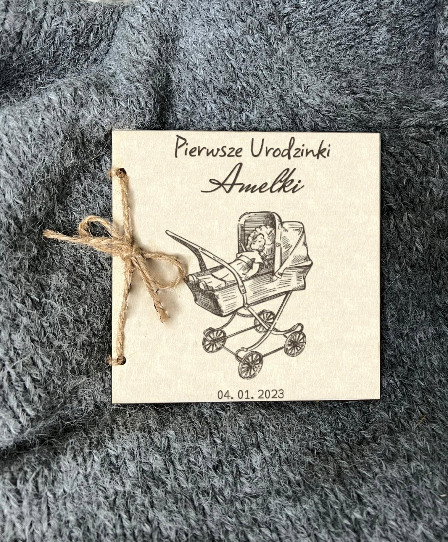 Drewniana Kartka na roczek z życzeniami Urodziny