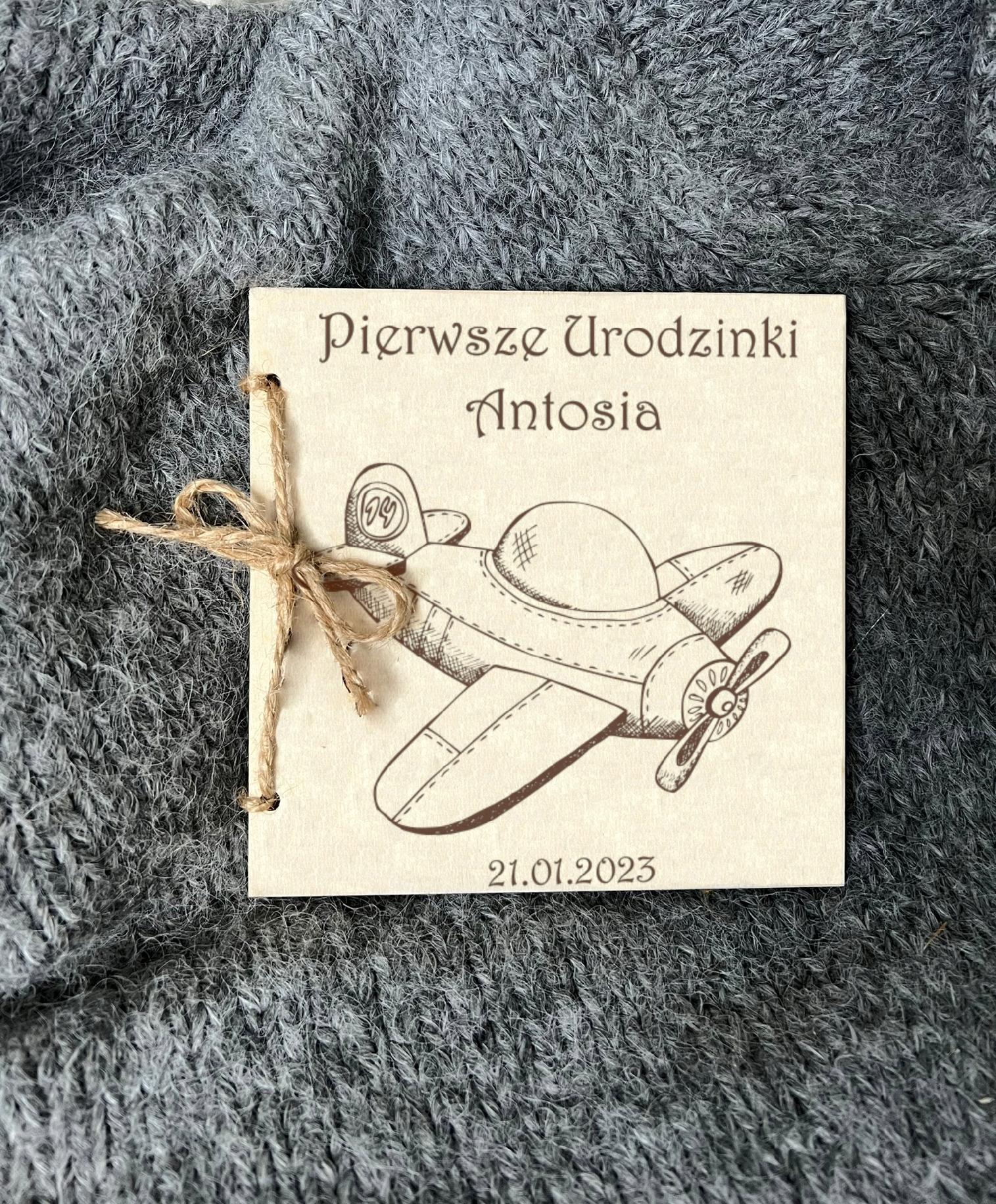 Drewniana Kartka na roczek z życzeniami Urodziny