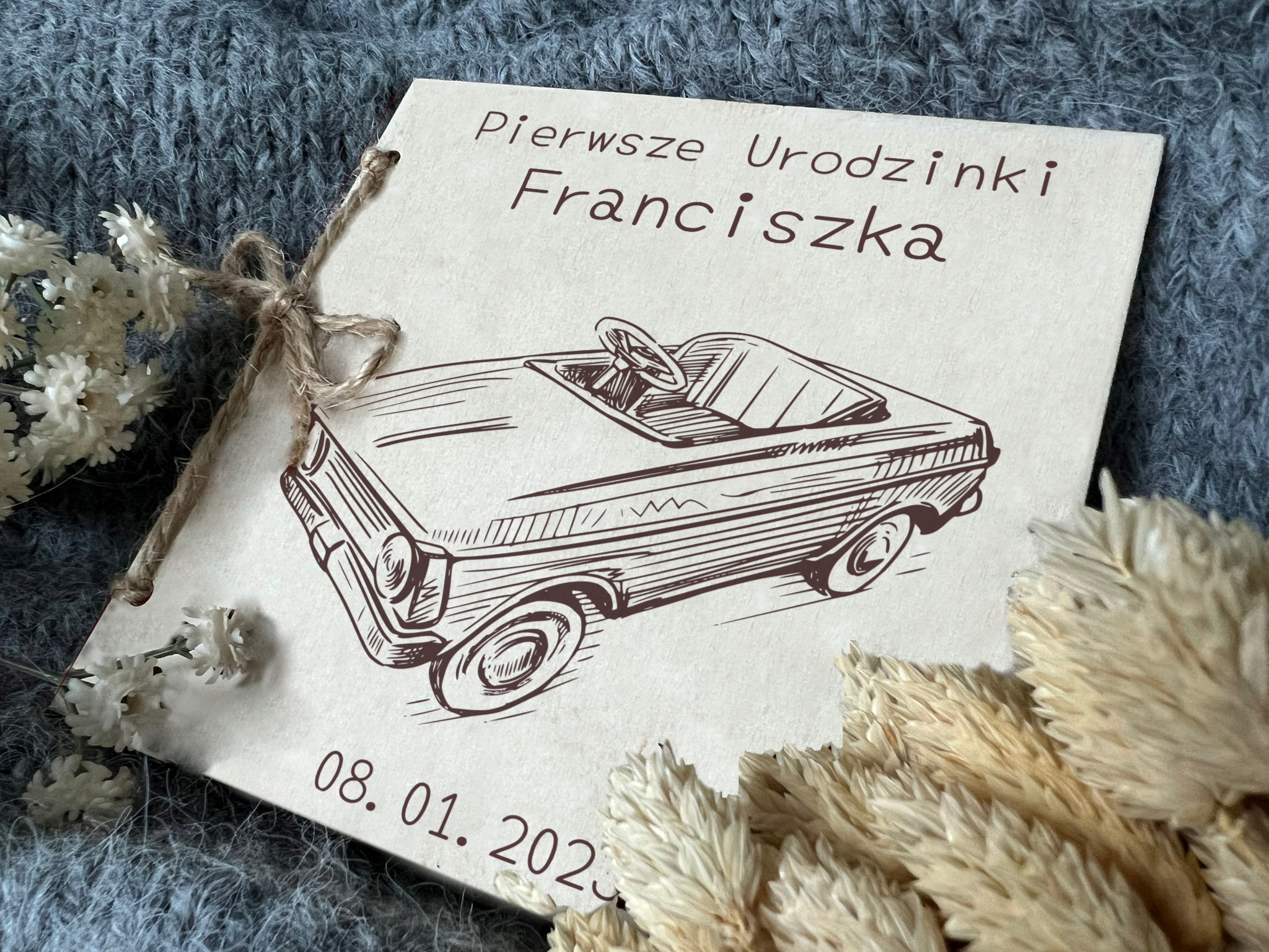 Drewniana Kartka na roczek z życzeniami Urodziny