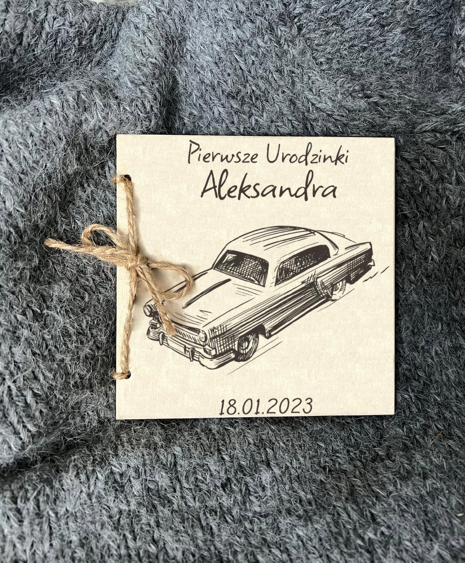 Drewniana Kartka na roczek z życzeniami Urodziny