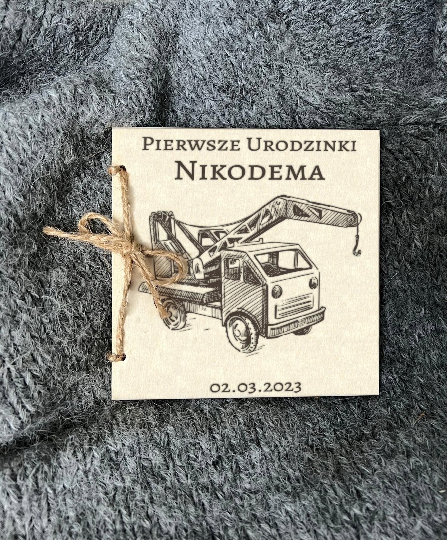 Drewniana Kartka na roczek z życzeniami