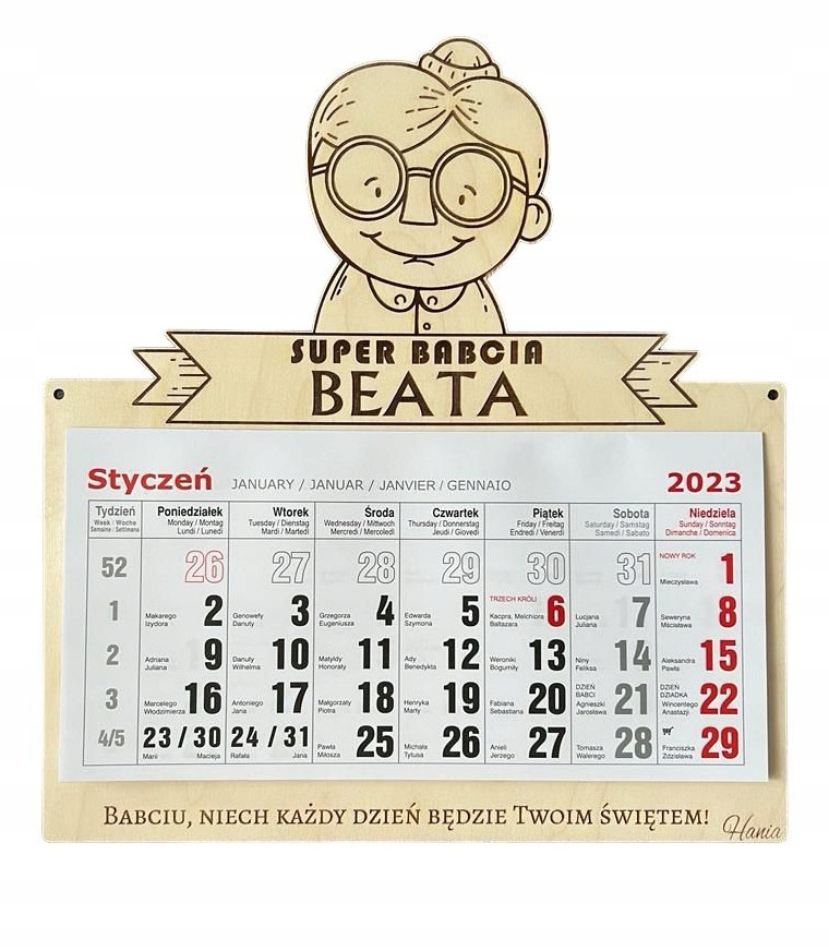DREWNIANY KALENDARZ 2025 dla BABCI