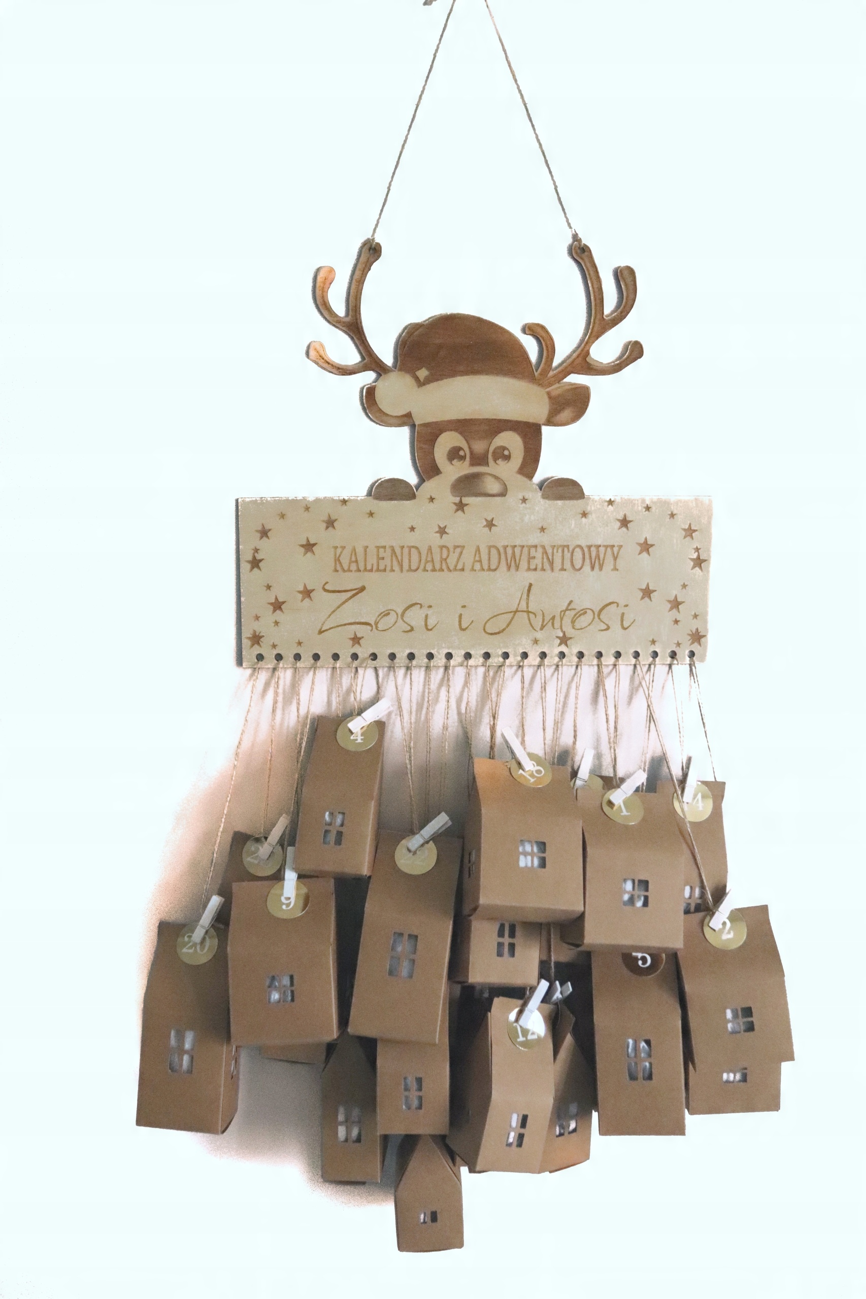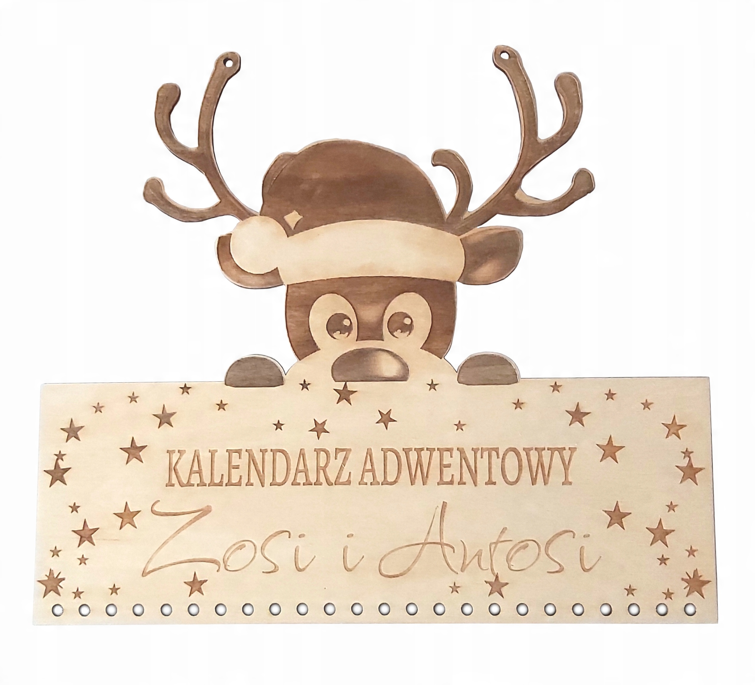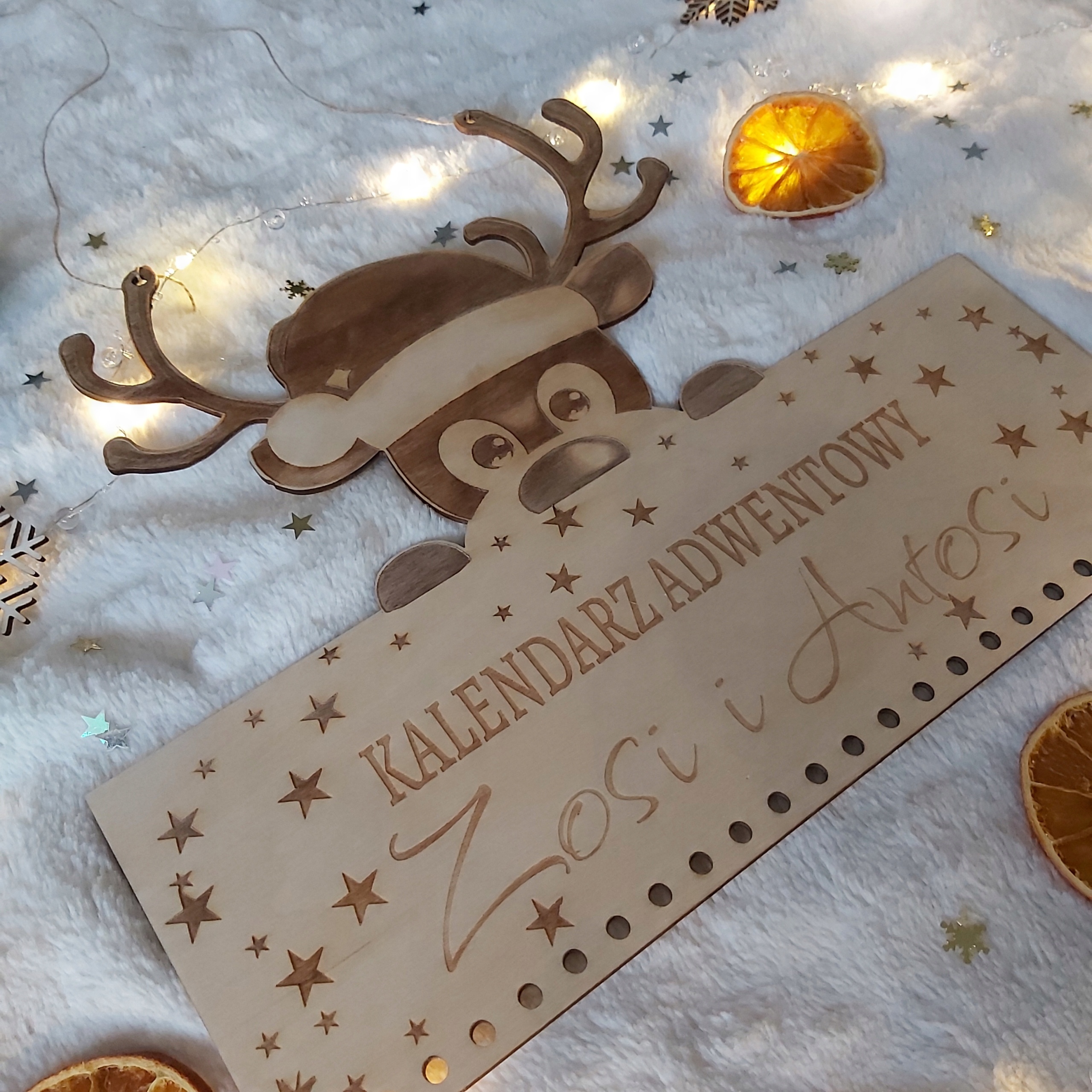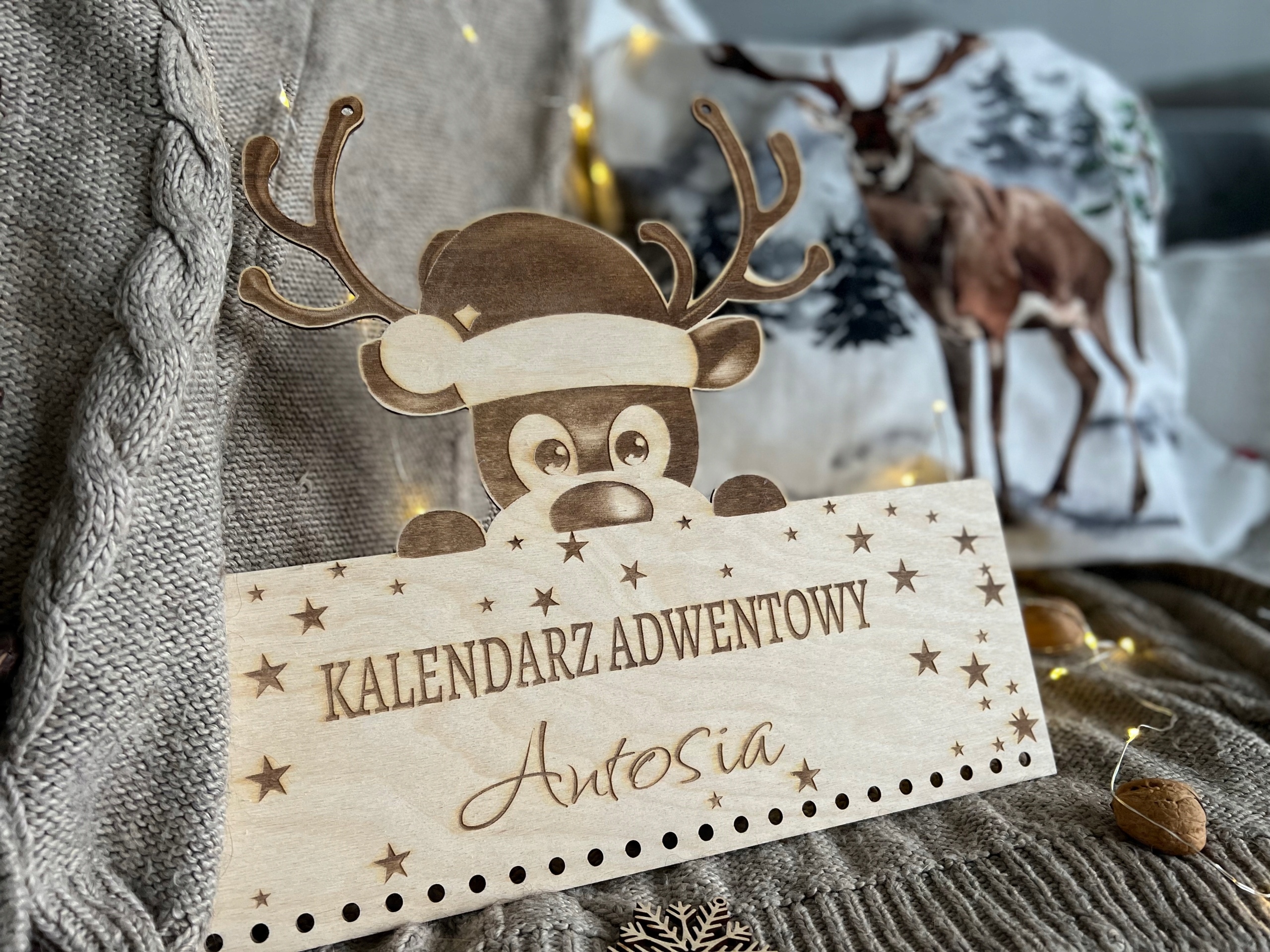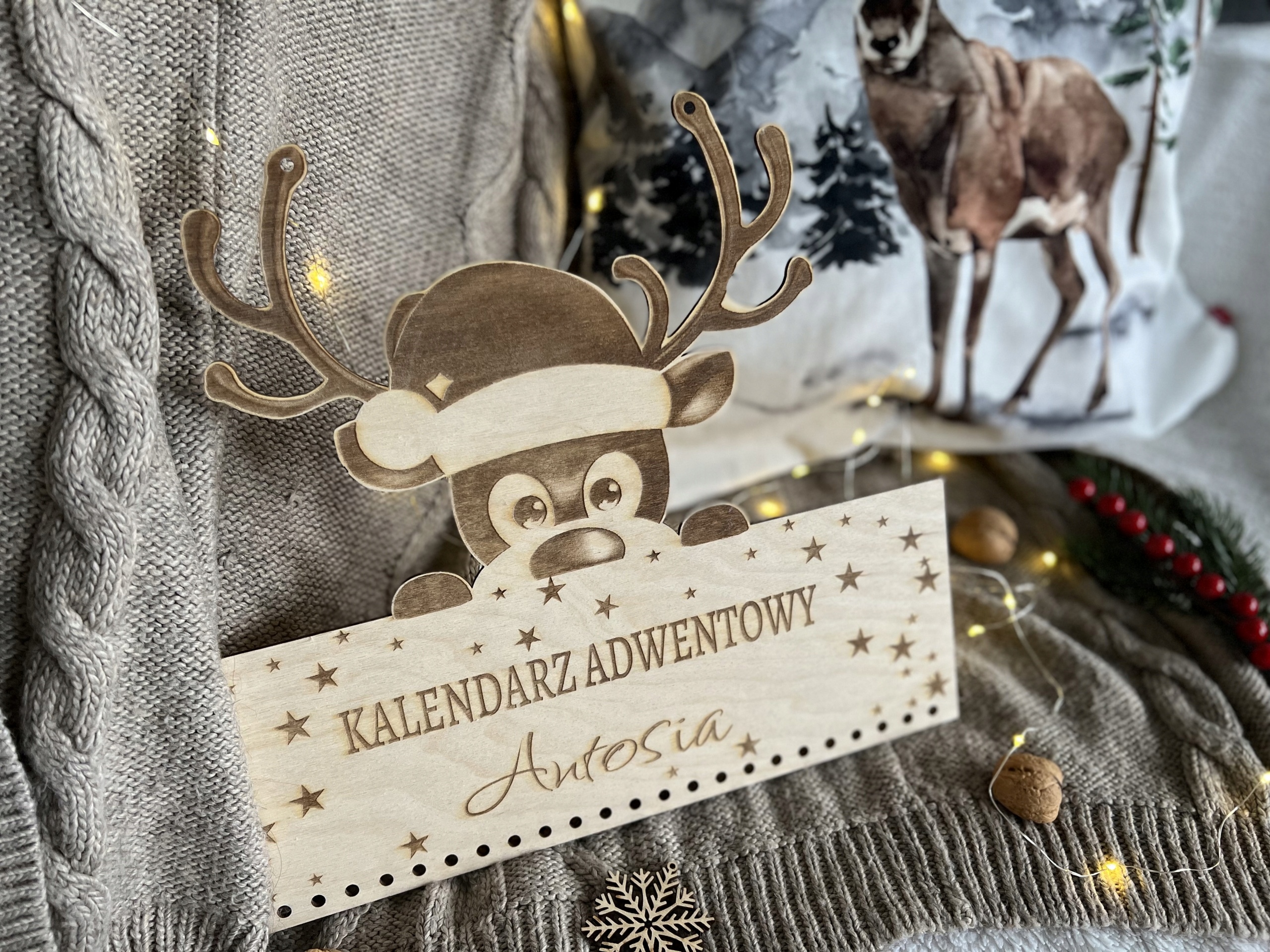 KALENDARZ ADWENTOWY DREWNIANY DIY Z MOTYWE RENIFERKA – PERSONALIZOWANY