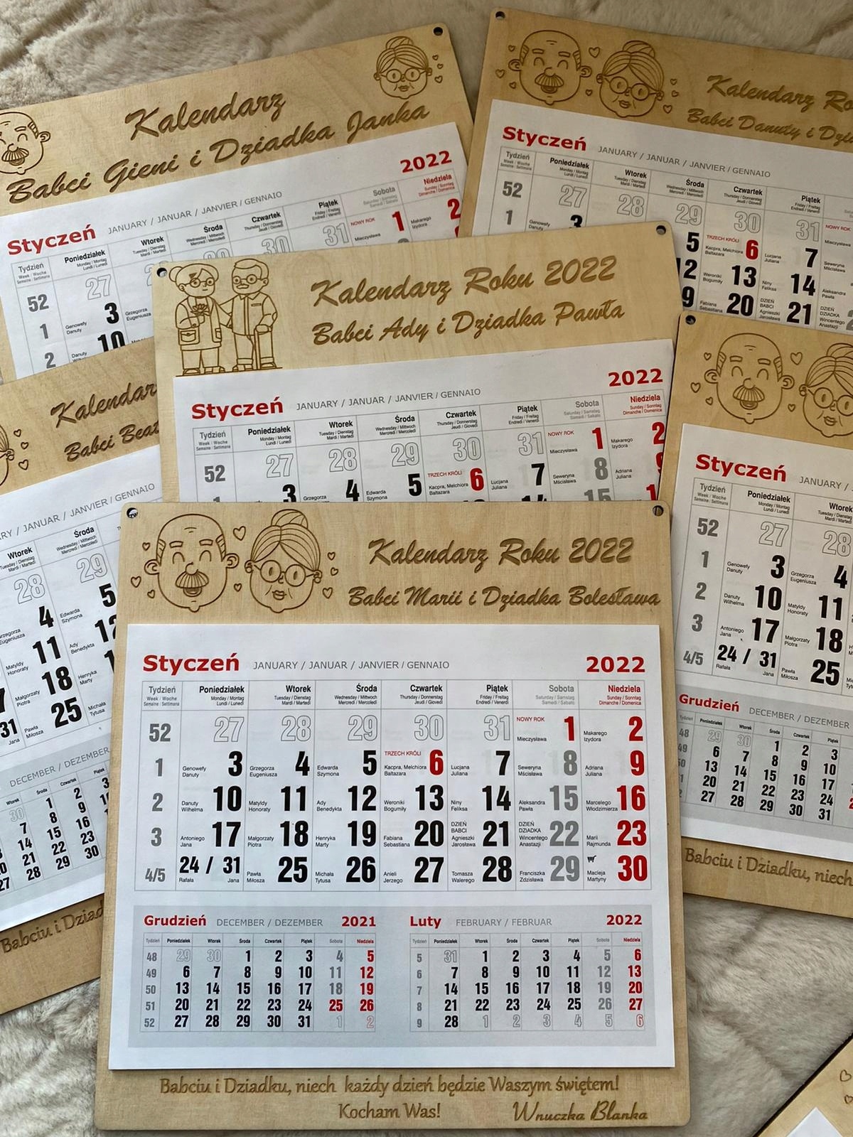 DREWNIANY KALENDARZ 2025 PERSONALIZOWANY Z GRAWEREM DLA BABCI I DZIADKA