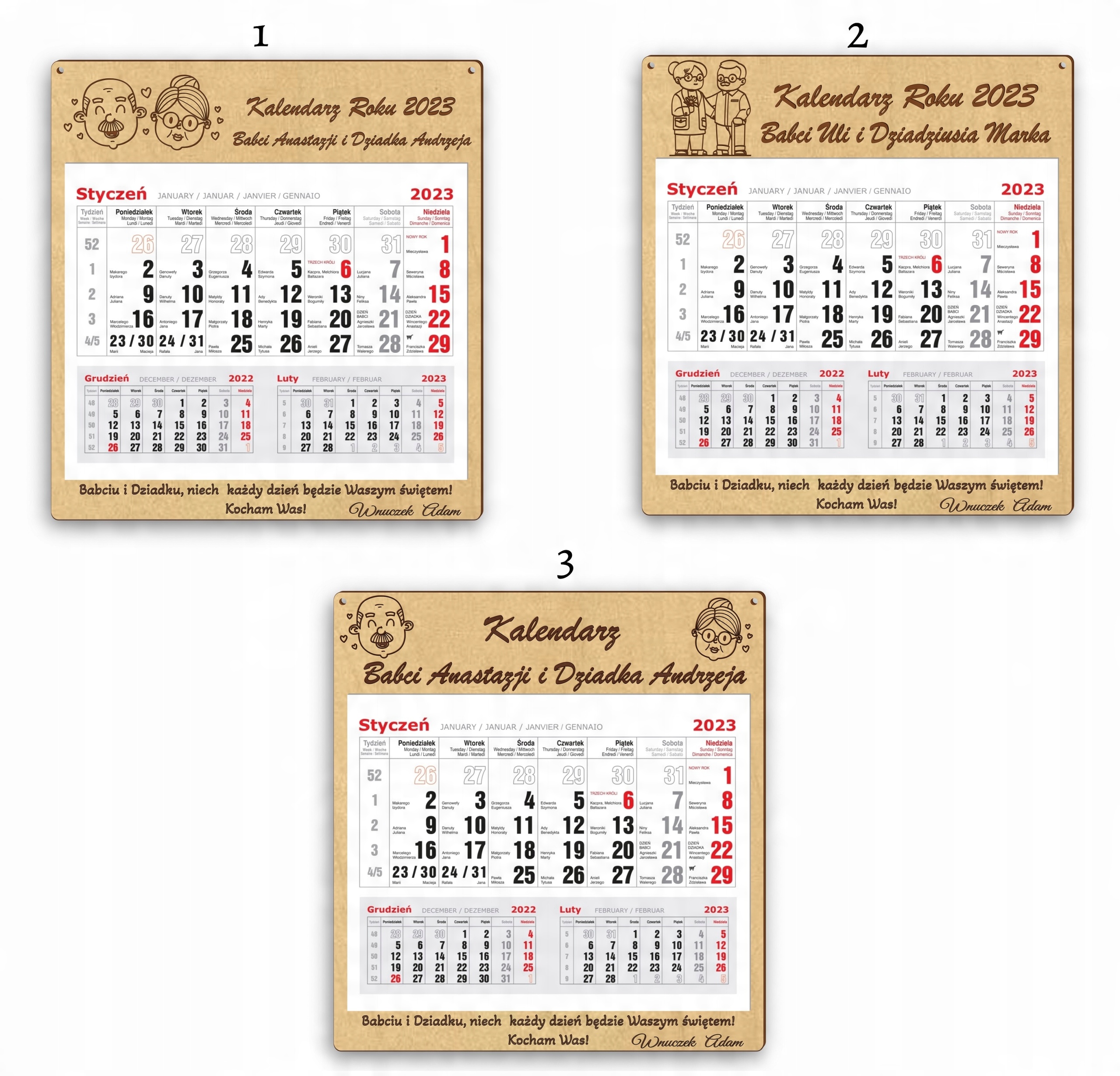 DREWNIANY KALENDARZ 2025 PERSONALIZOWANY Z GRAWEREM DLA BABCI I DZIADKA