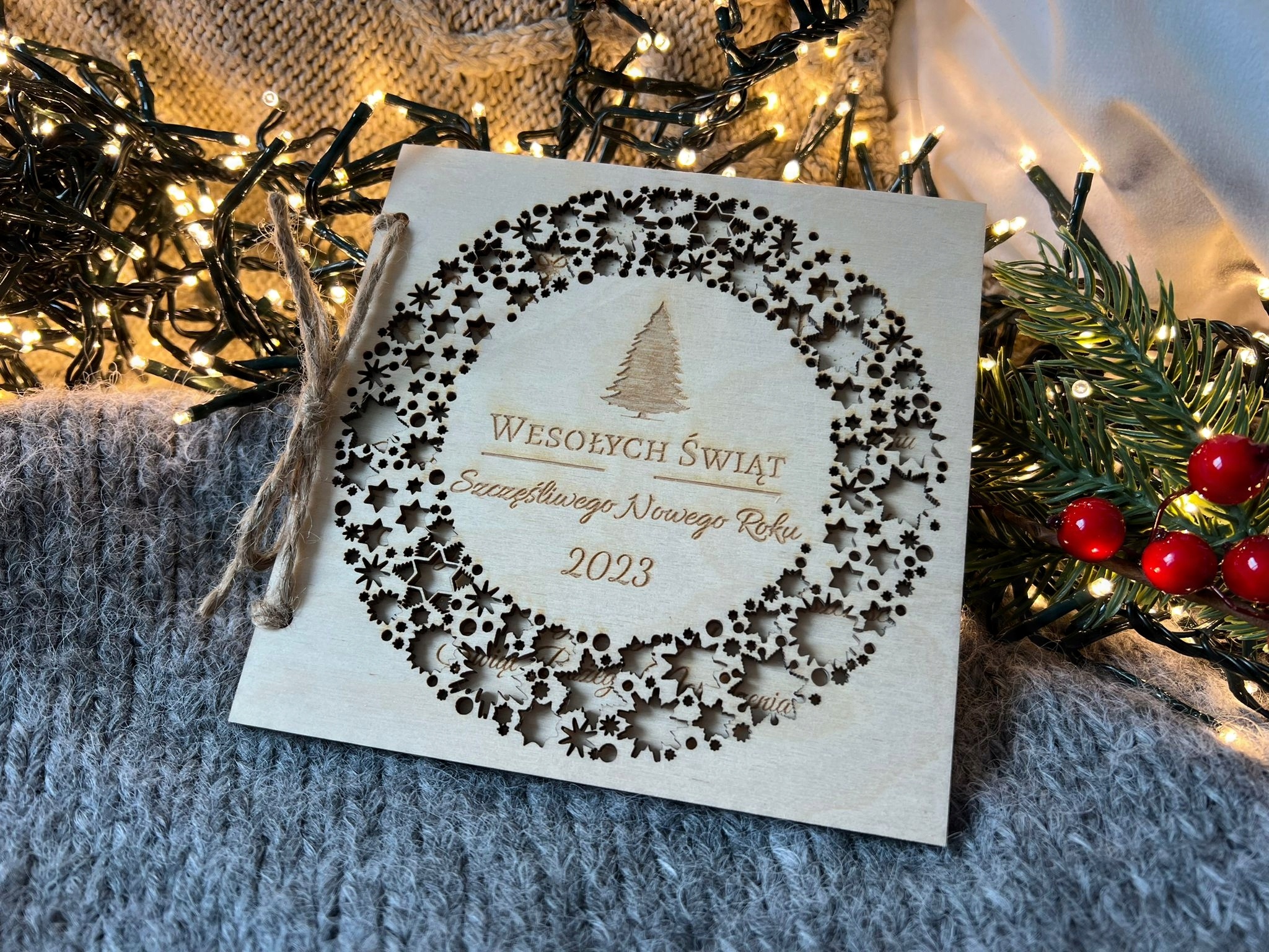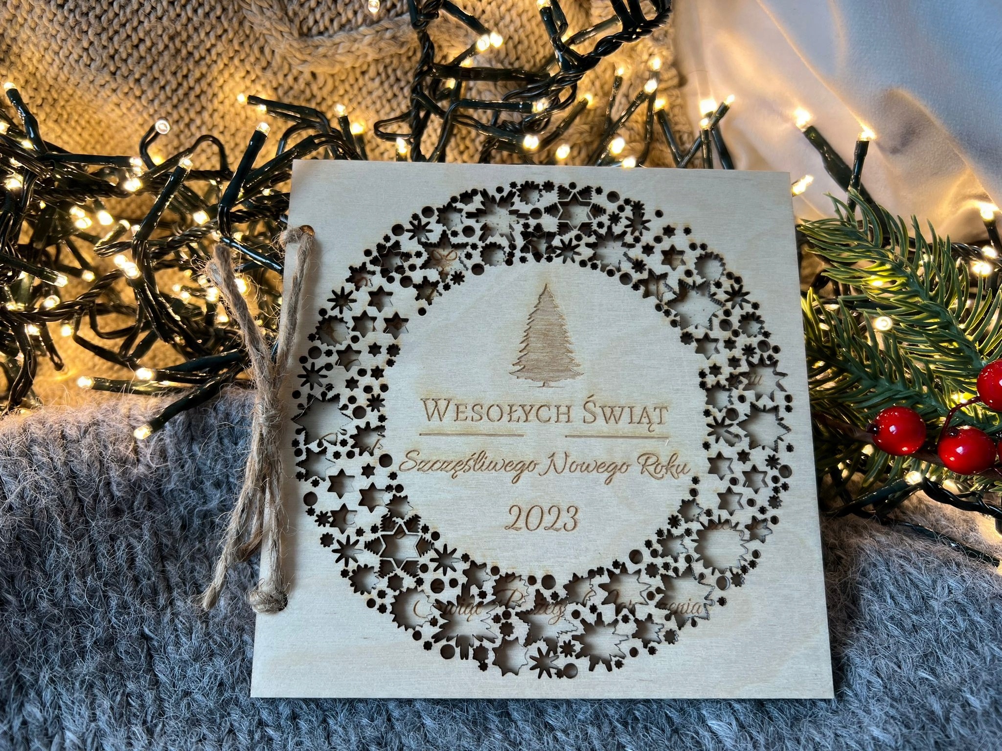 Personalizowana Drewniana Kartka Świąteczna