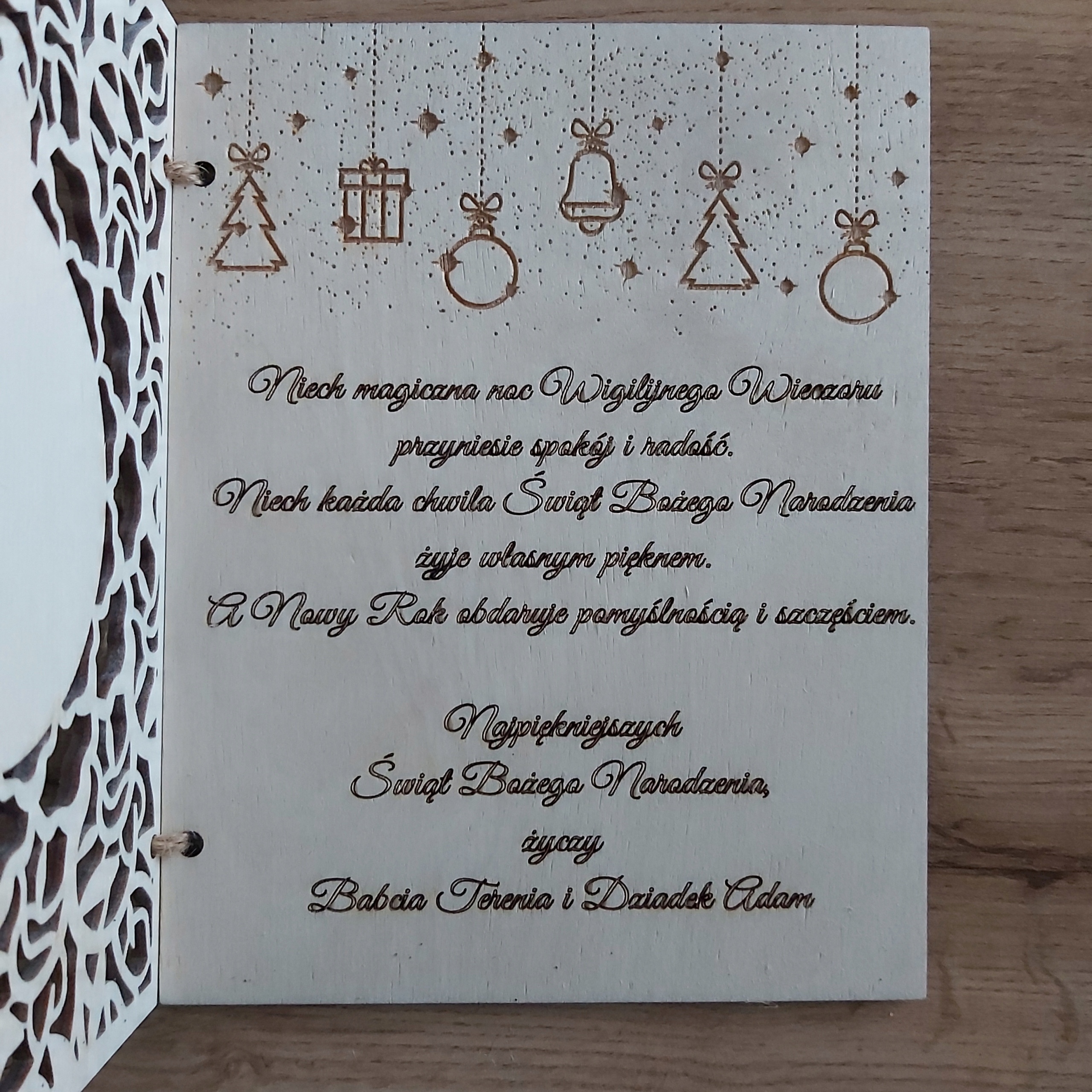Personalizowana Drewniana Kartka Świąteczna