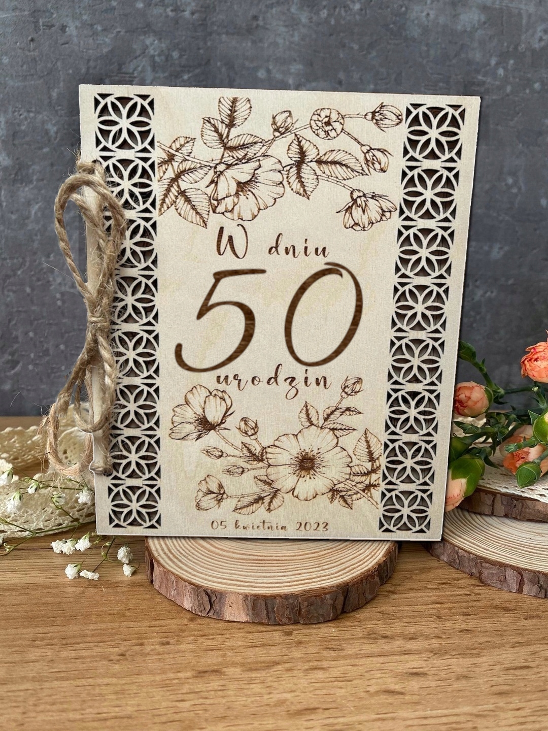 Kartka urodzinowa na 50 urodziny DREWNO PRESONALIZOWANA 50TKA