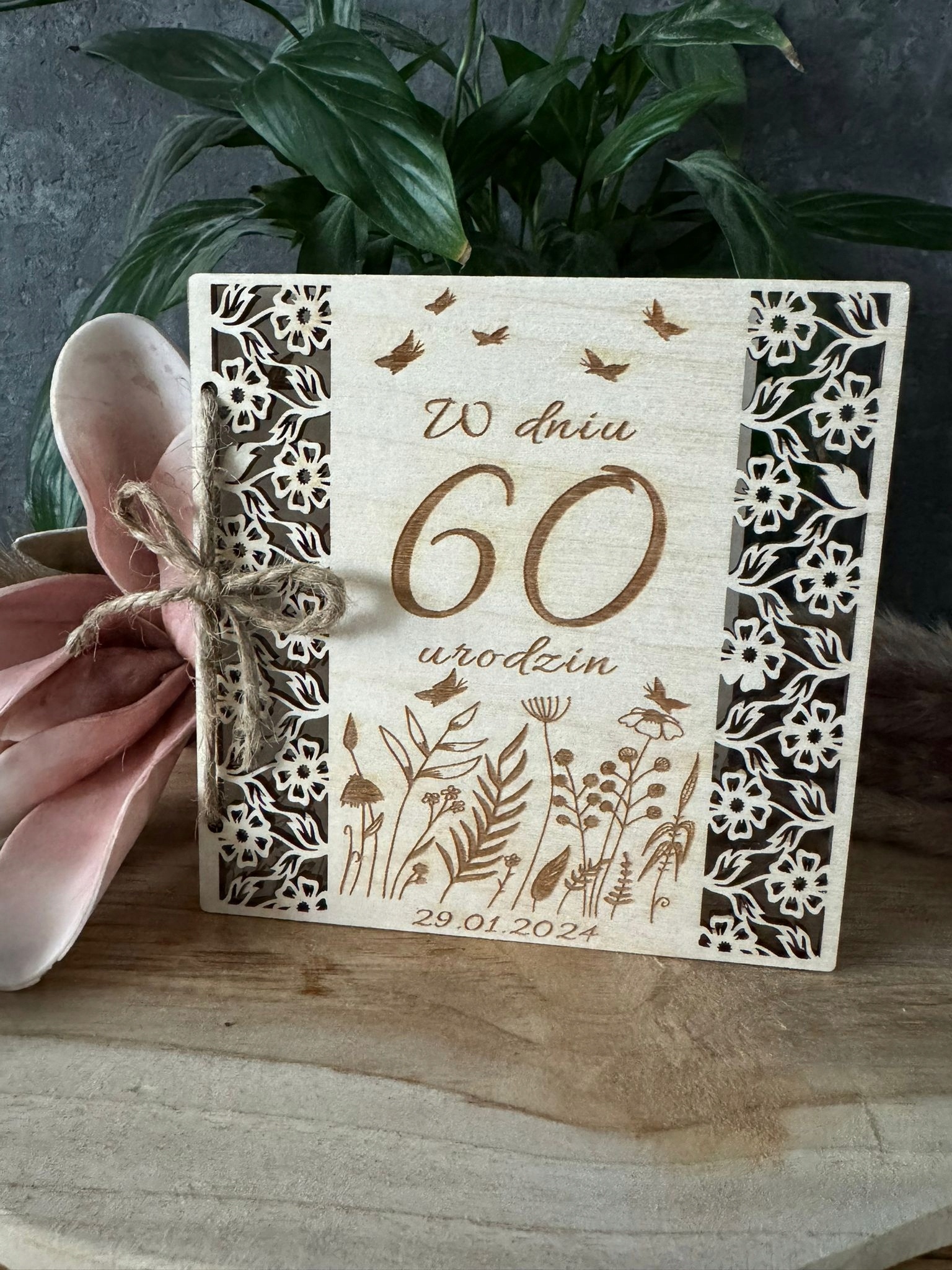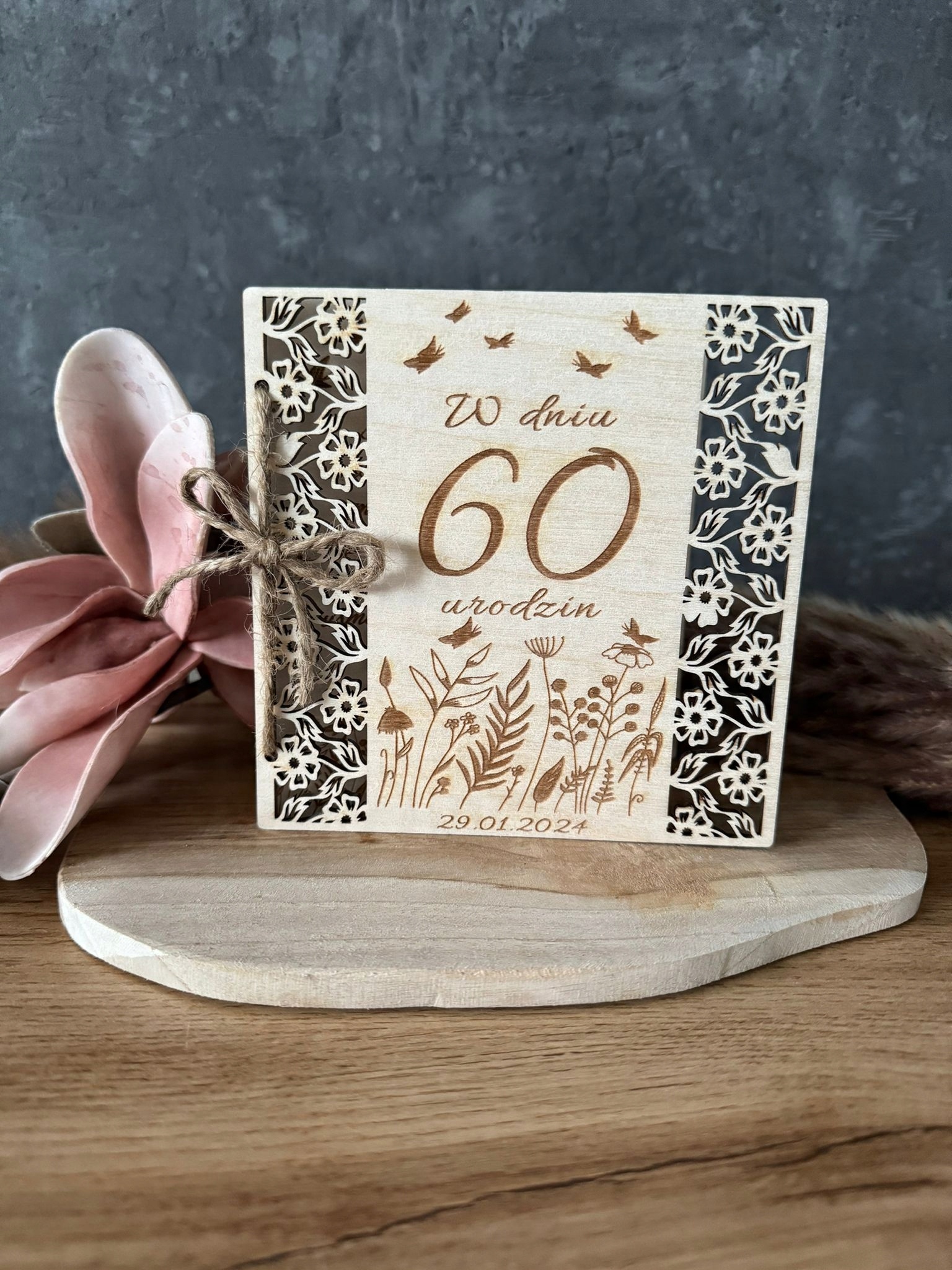 Kartka urodzinowa na urodziny 30 40 50 60 DREWNO PREZENT PERSONALIZACJA