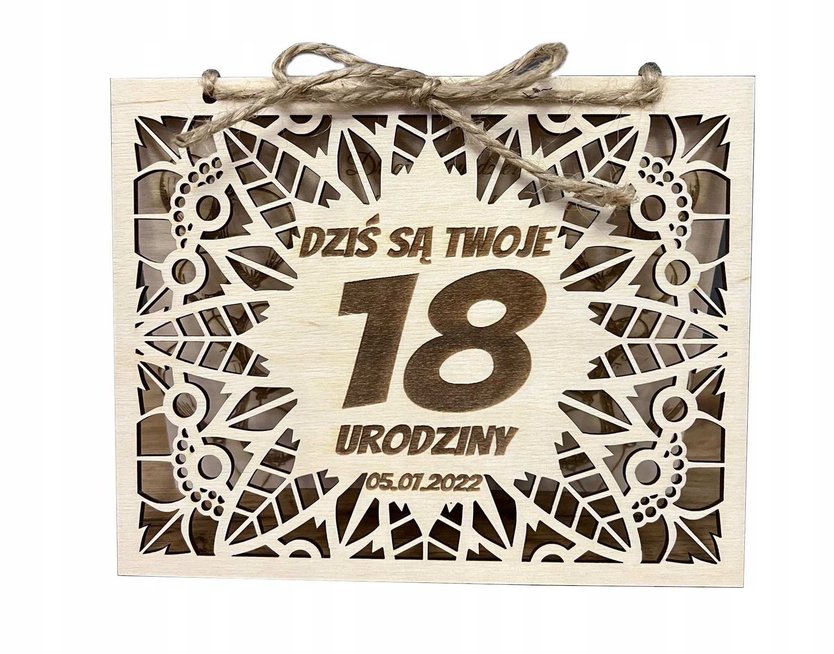 Kartka urodzinowa OSIEMNASTKA 18 URODZINY DREWNO