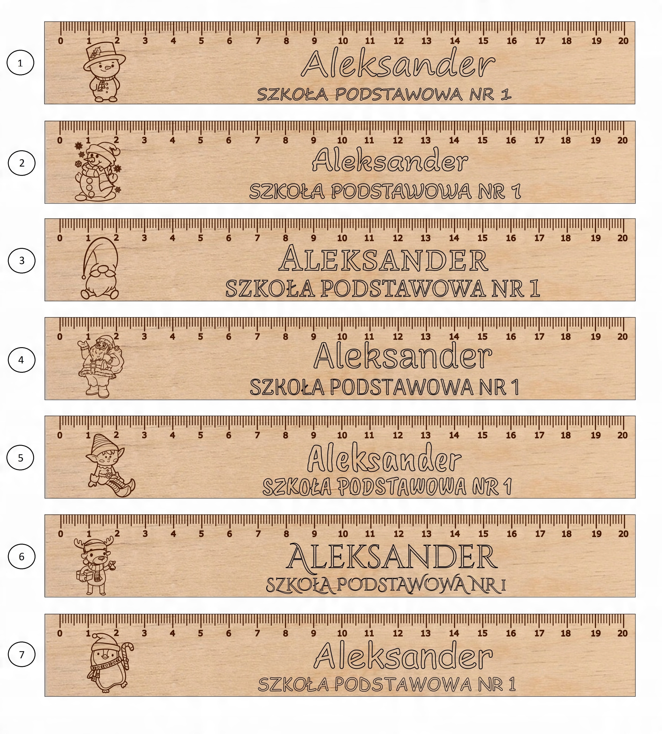 Prezent dla uczniów na Mikołaja oraz Święta Bożego narodzenia – Pamiątka Imienna – Linijka drewniana 20 cm