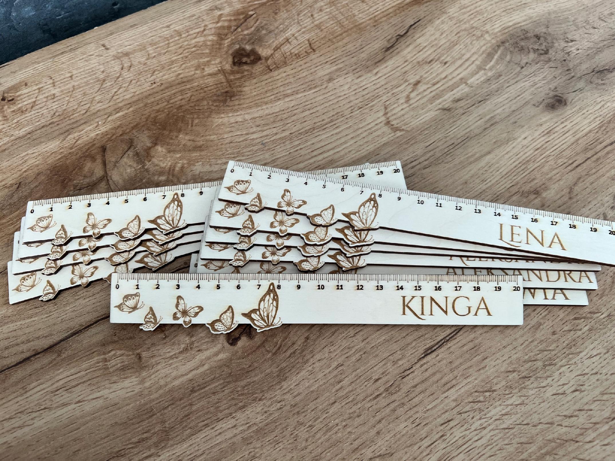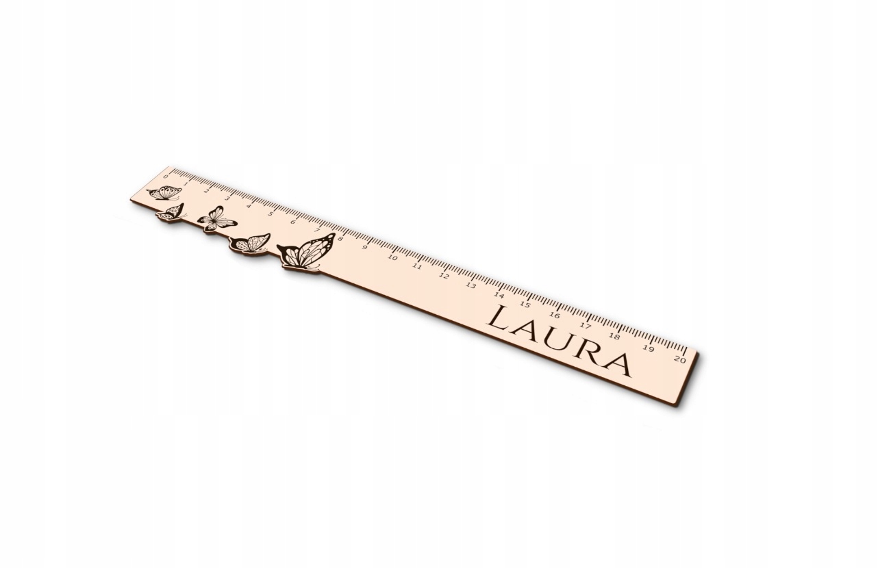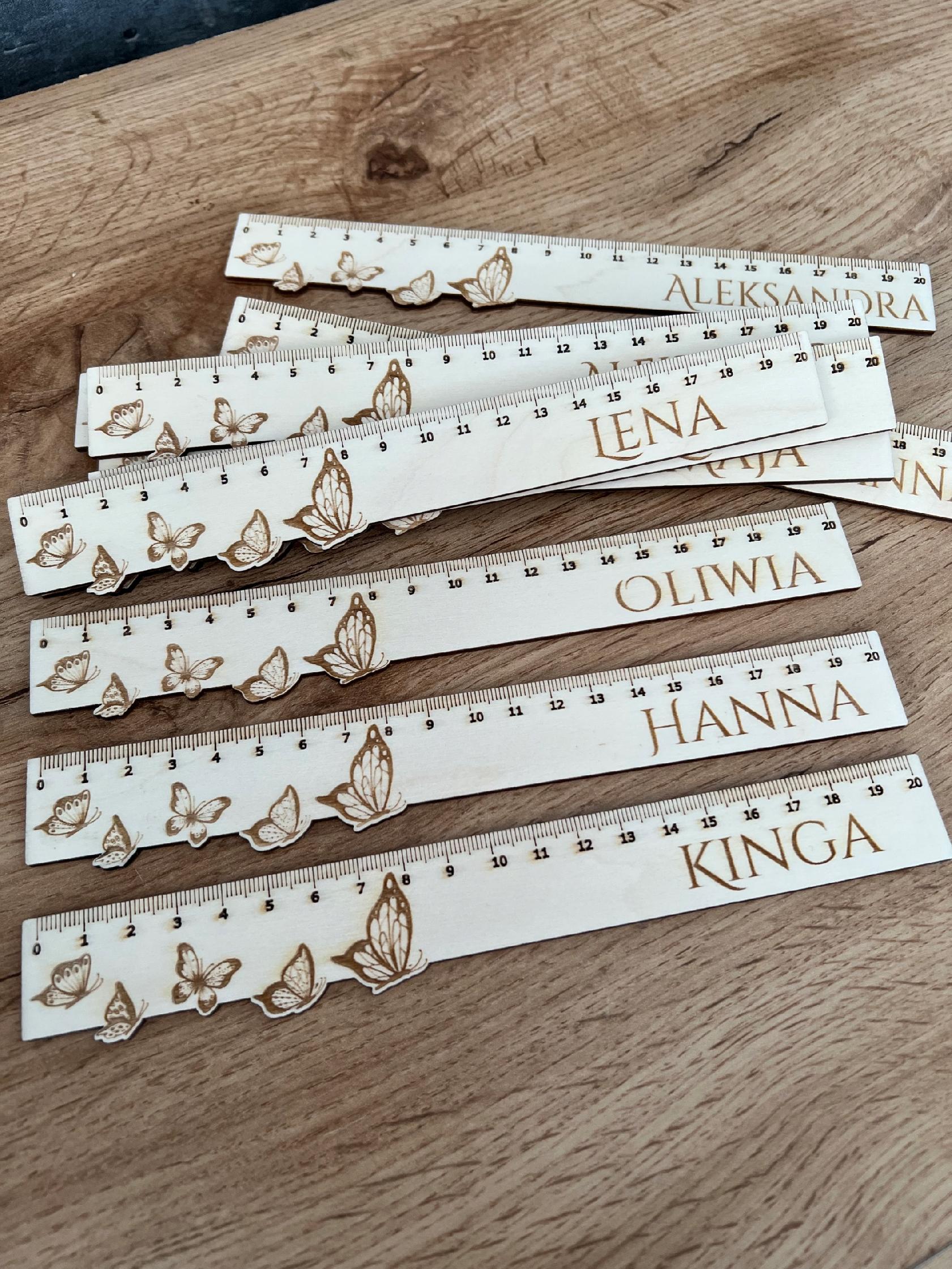 DREWNIANA LINIJKA z motywem MOTYLKÓW i spersonalizowanym imieniem.