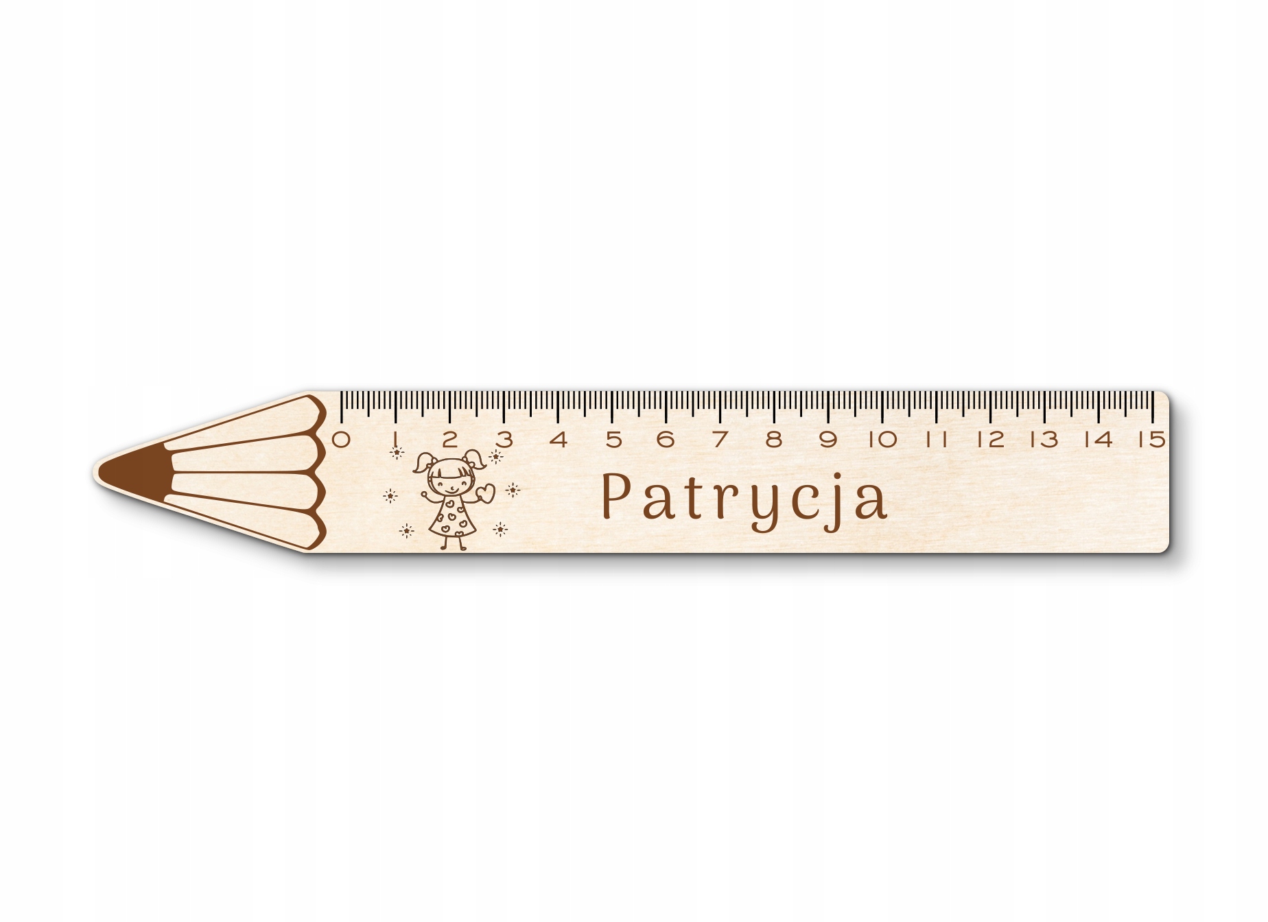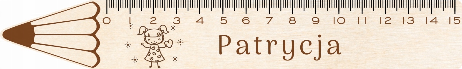Prezentowany model linijki w kształcie ołówka, grafika dziewczynki + imię.