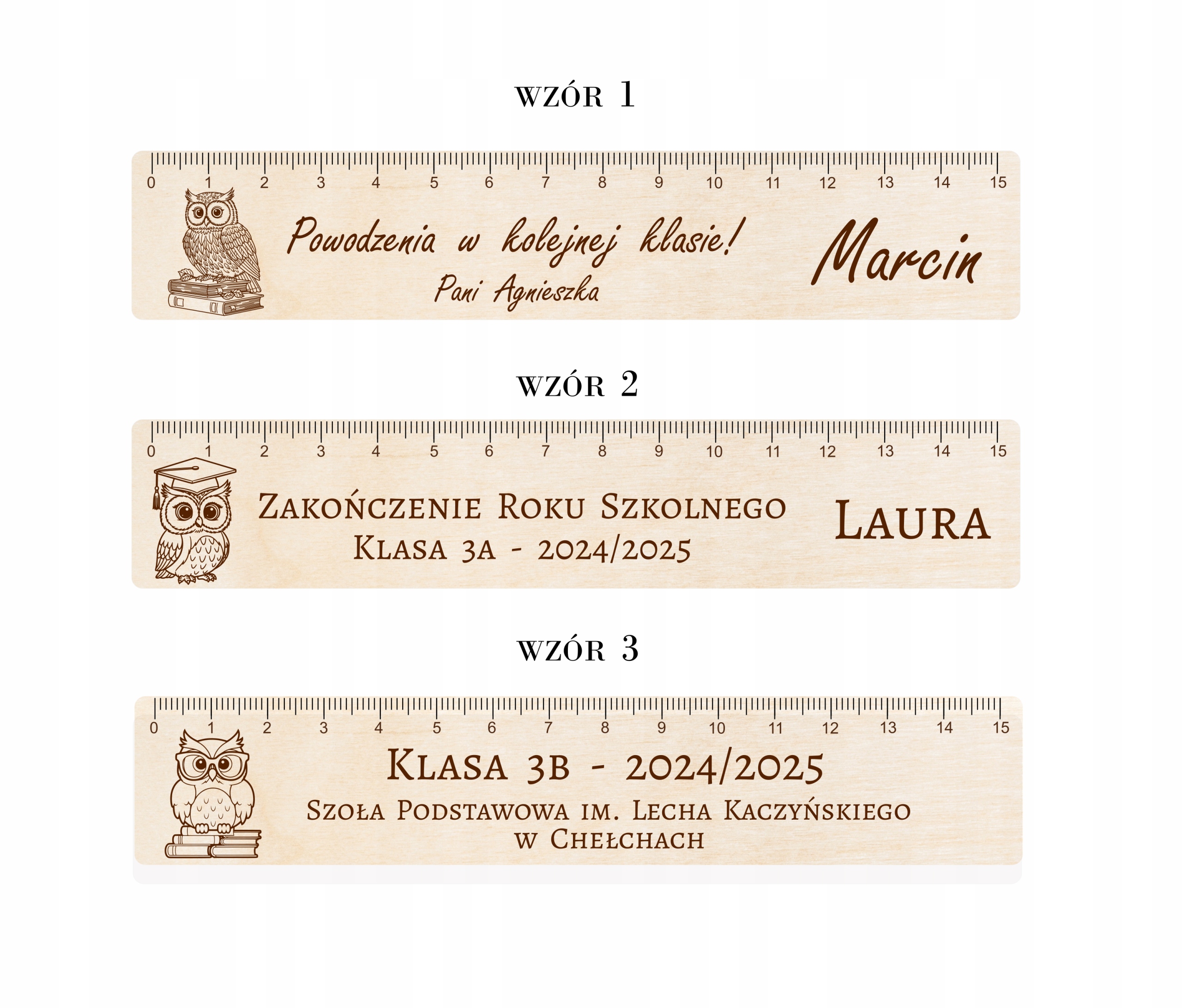 Prezent dla uczniów na zakończenie roku szkolnego – Pamiątka Imienna – Linijka drewniana 20 cm
