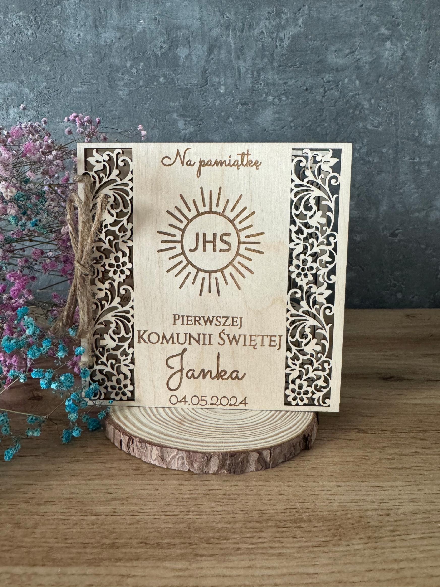 Pamiątka Pierwszej Komunii Świętej AŻUROWA GRAWER IMIĘ PERSONALIZACJA