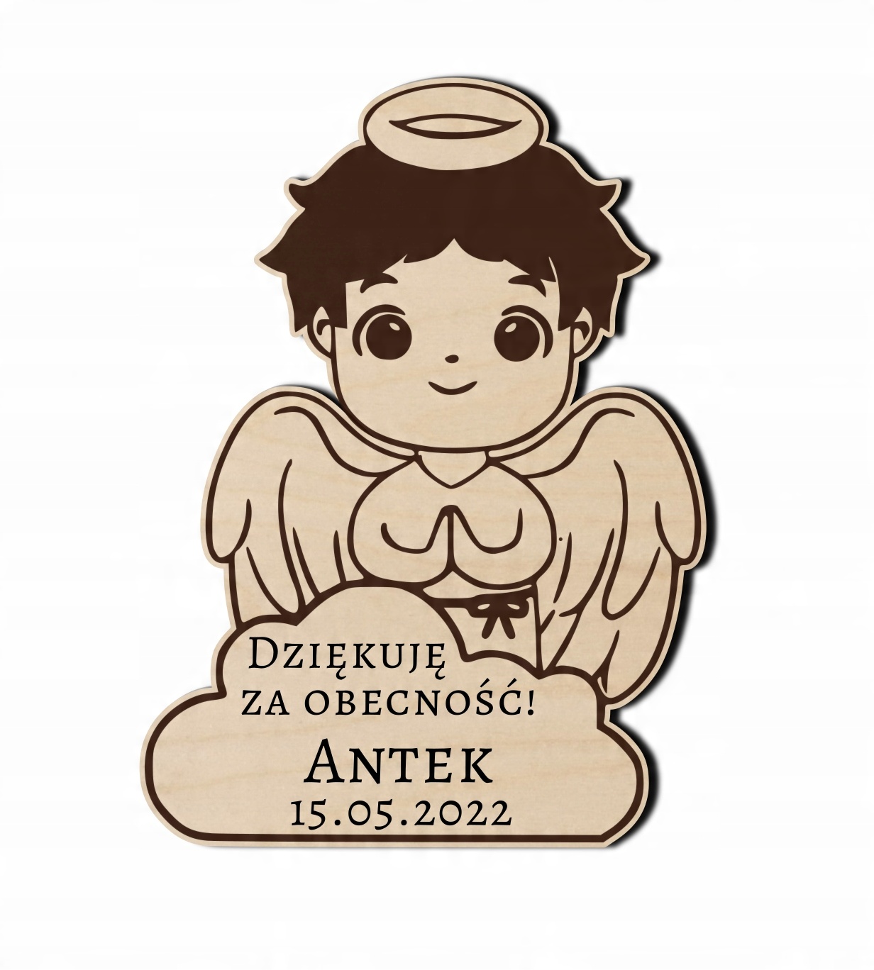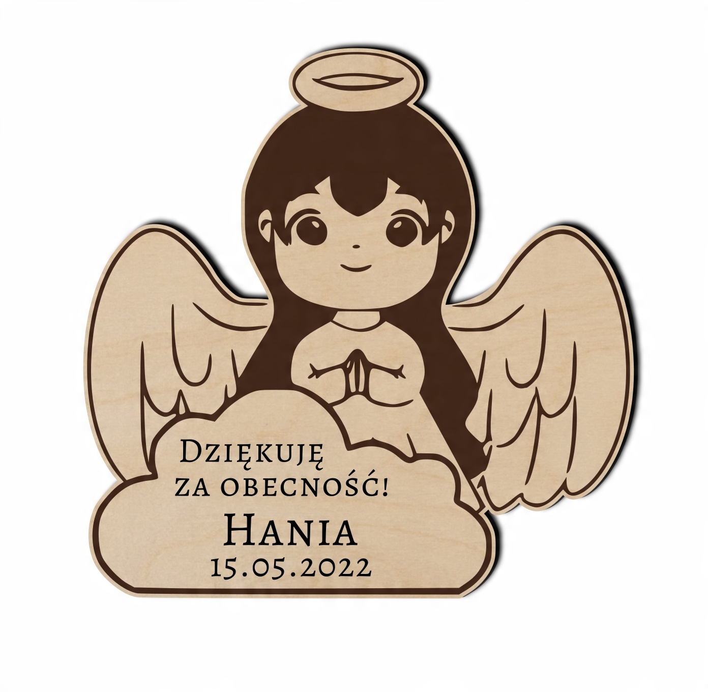 Indywidualnie spersonalizowany drewniany upominek dla gości z głębokim grawerem.