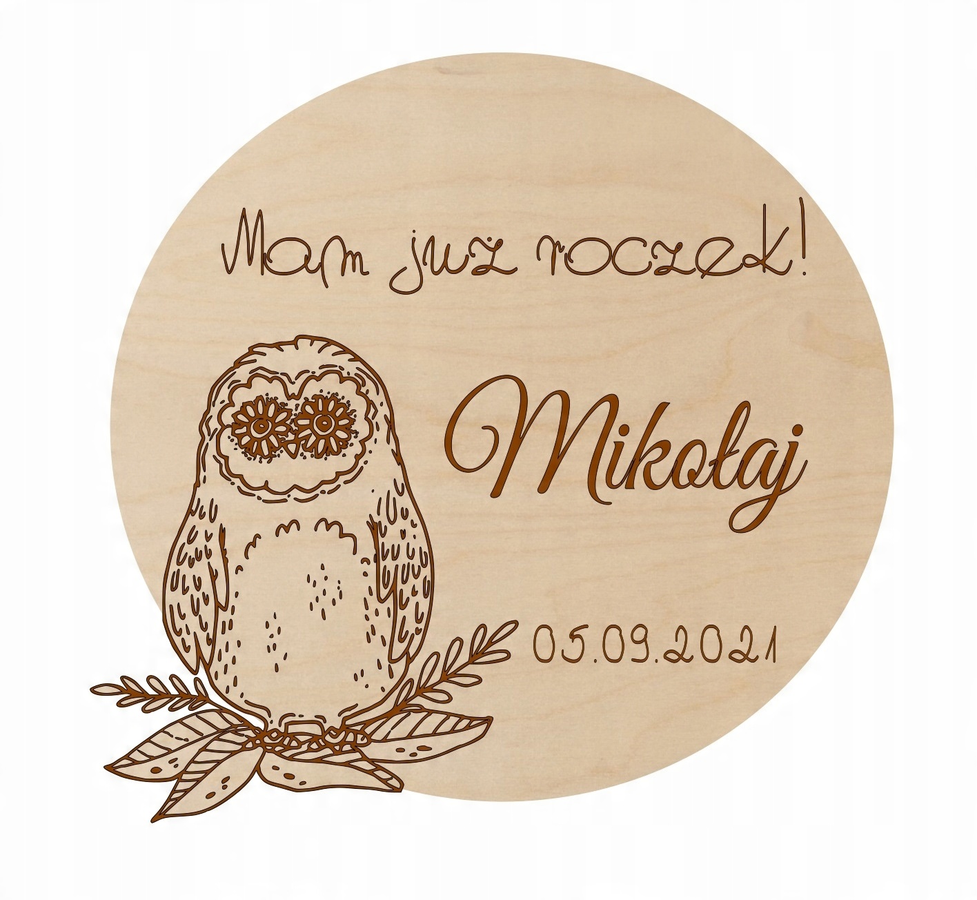 Indywidualnie spersonalizowany drewniany upominek dla gości z głębokim grawerem.