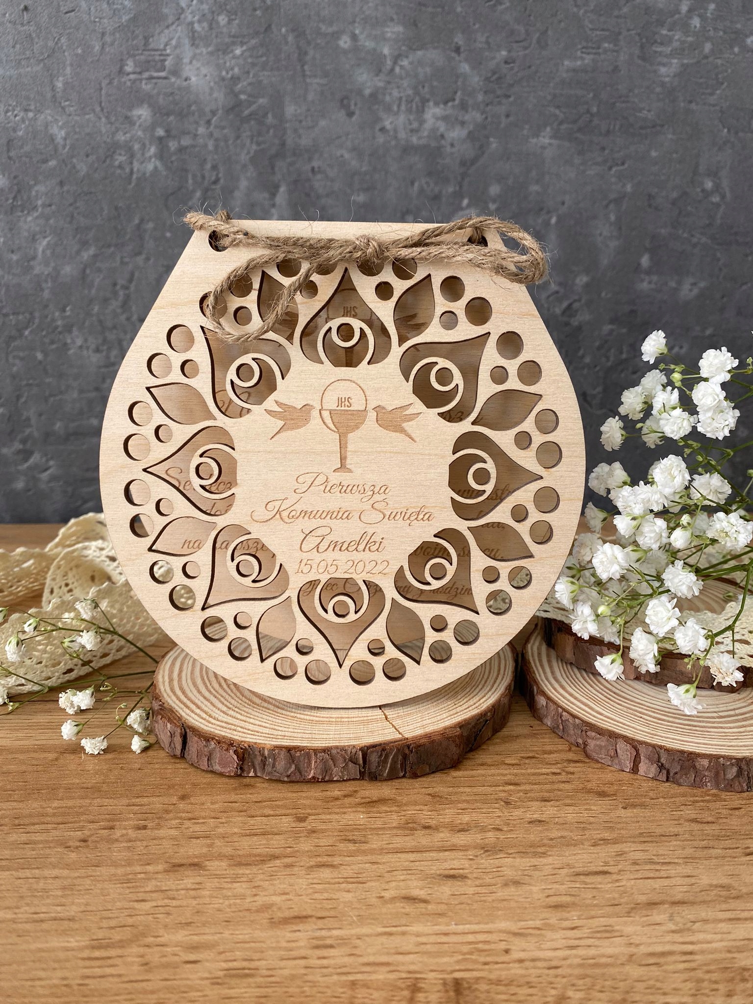 PREZENT PAMIĄTKA PIERWSZA KOMUNIA ŚWIĘTA DREWNO