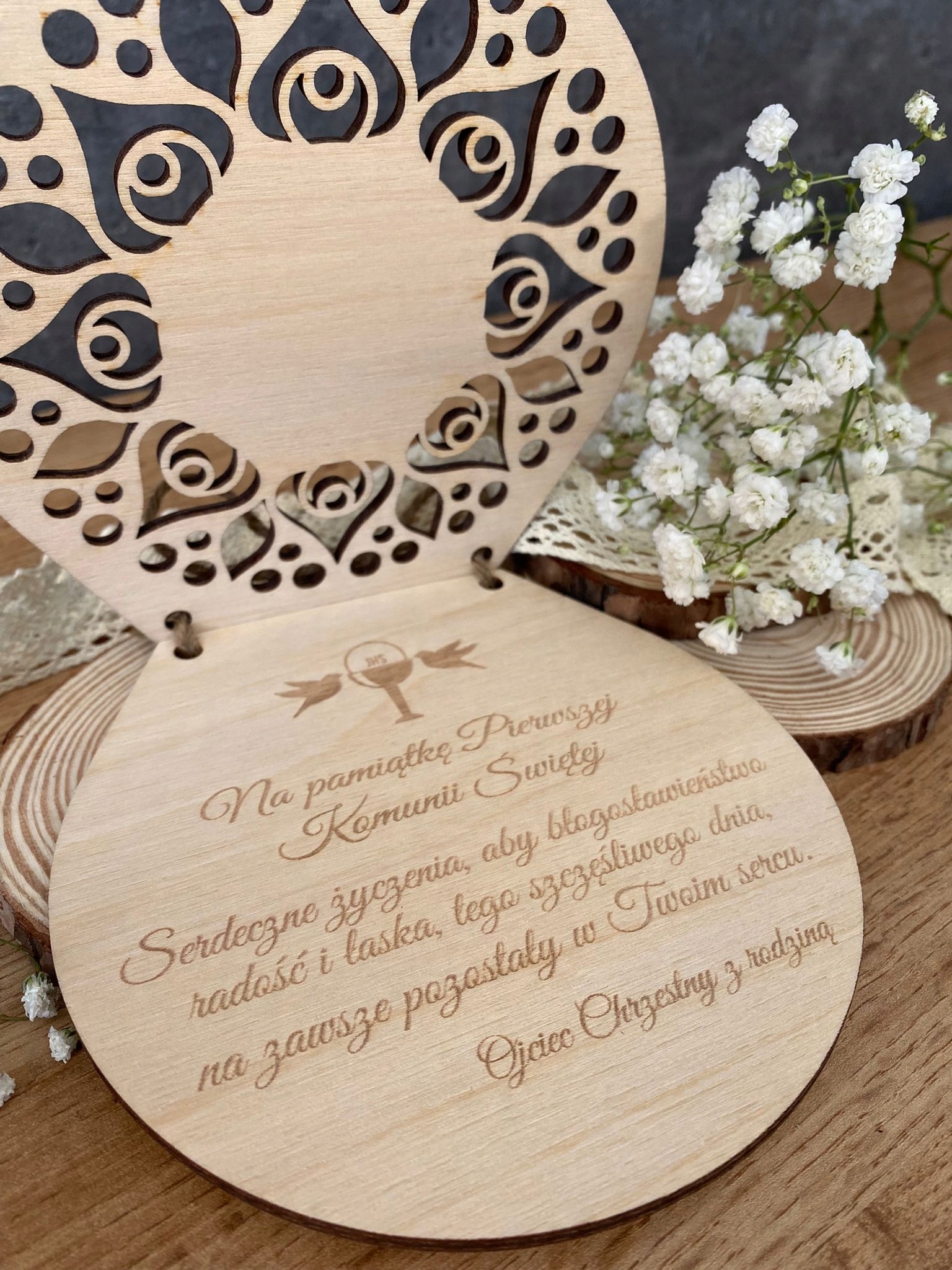 PREZENT PAMIĄTKA PIERWSZA KOMUNIA ŚWIĘTA DREWNO