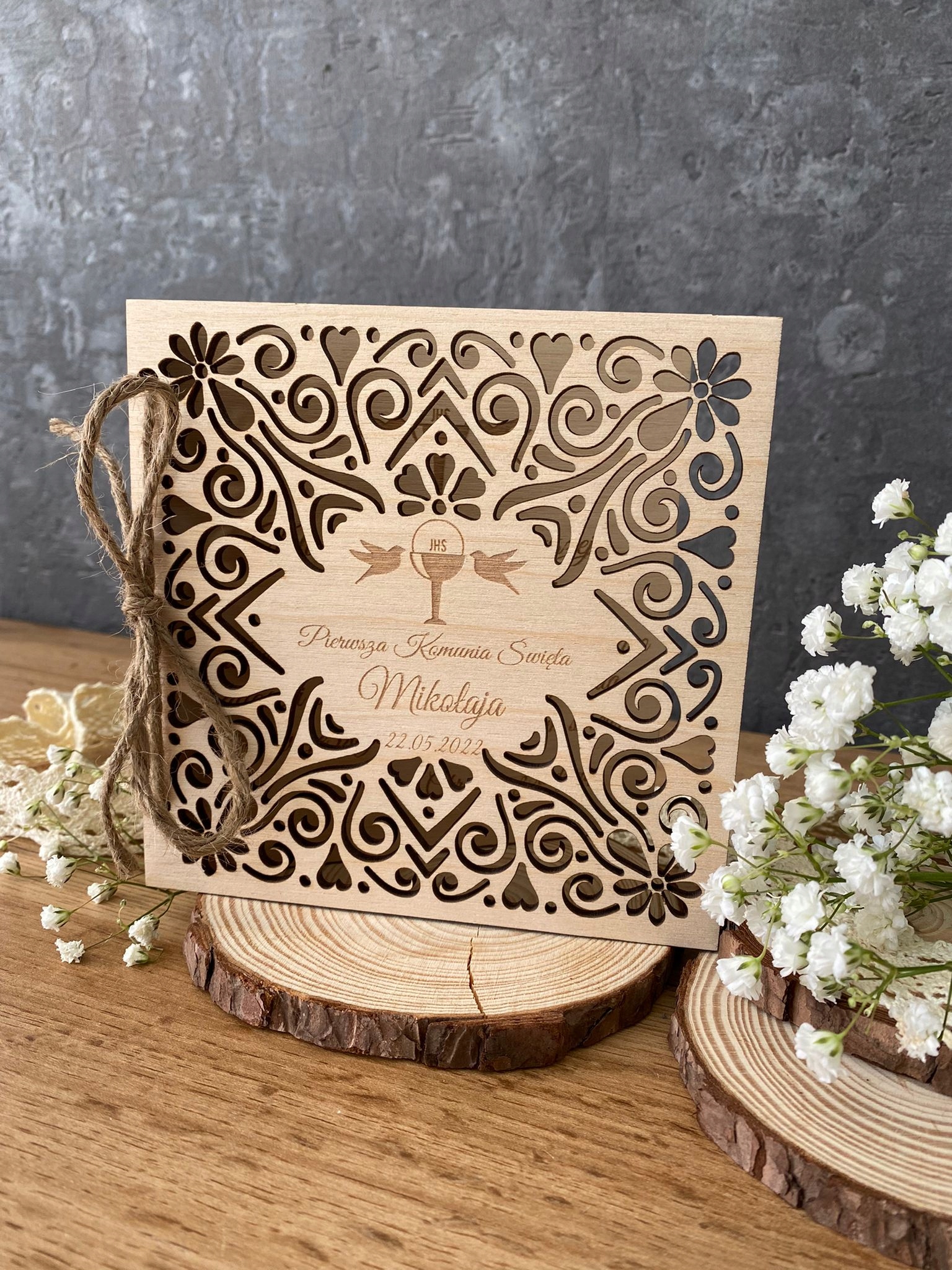 PREZENT PAMIĄTKA PIERWSZA KOMUNIA ŚWIĘTA DREWNO