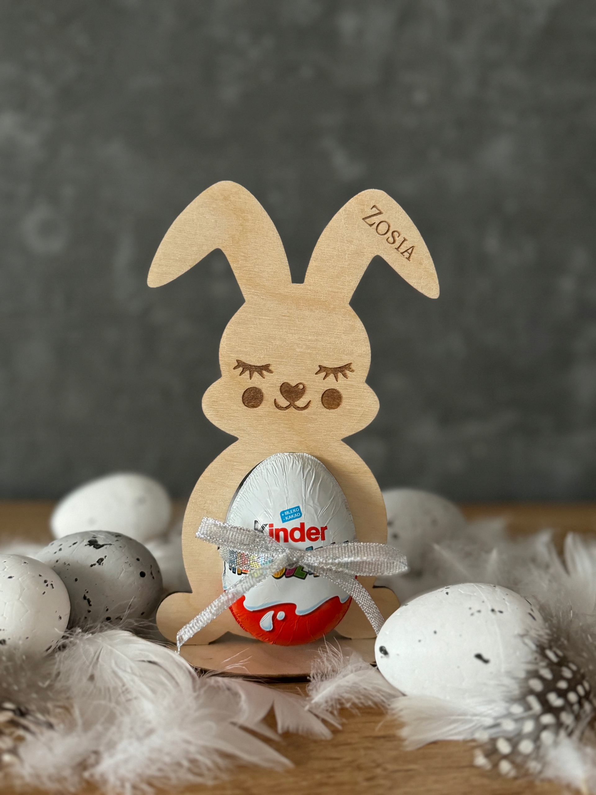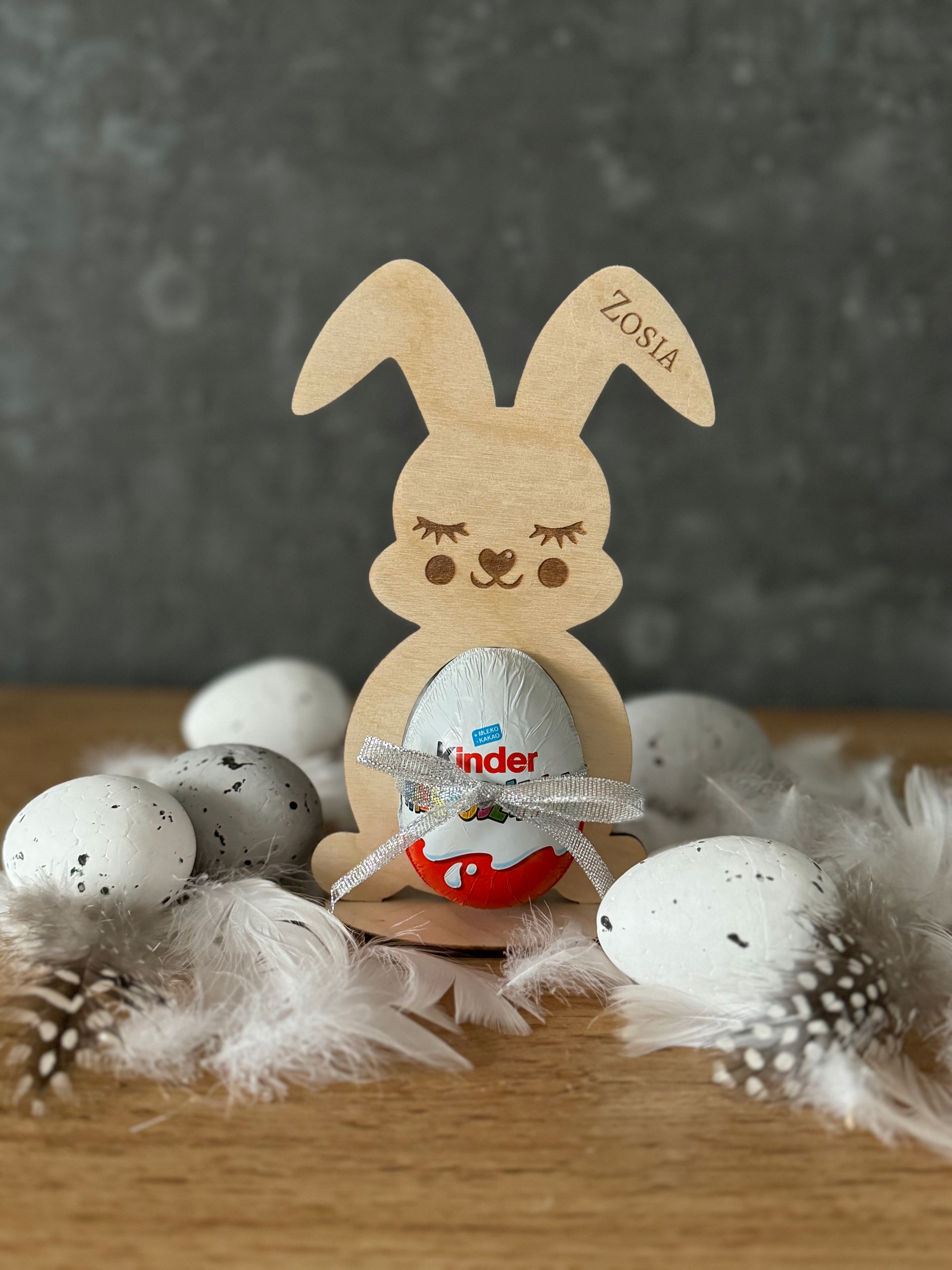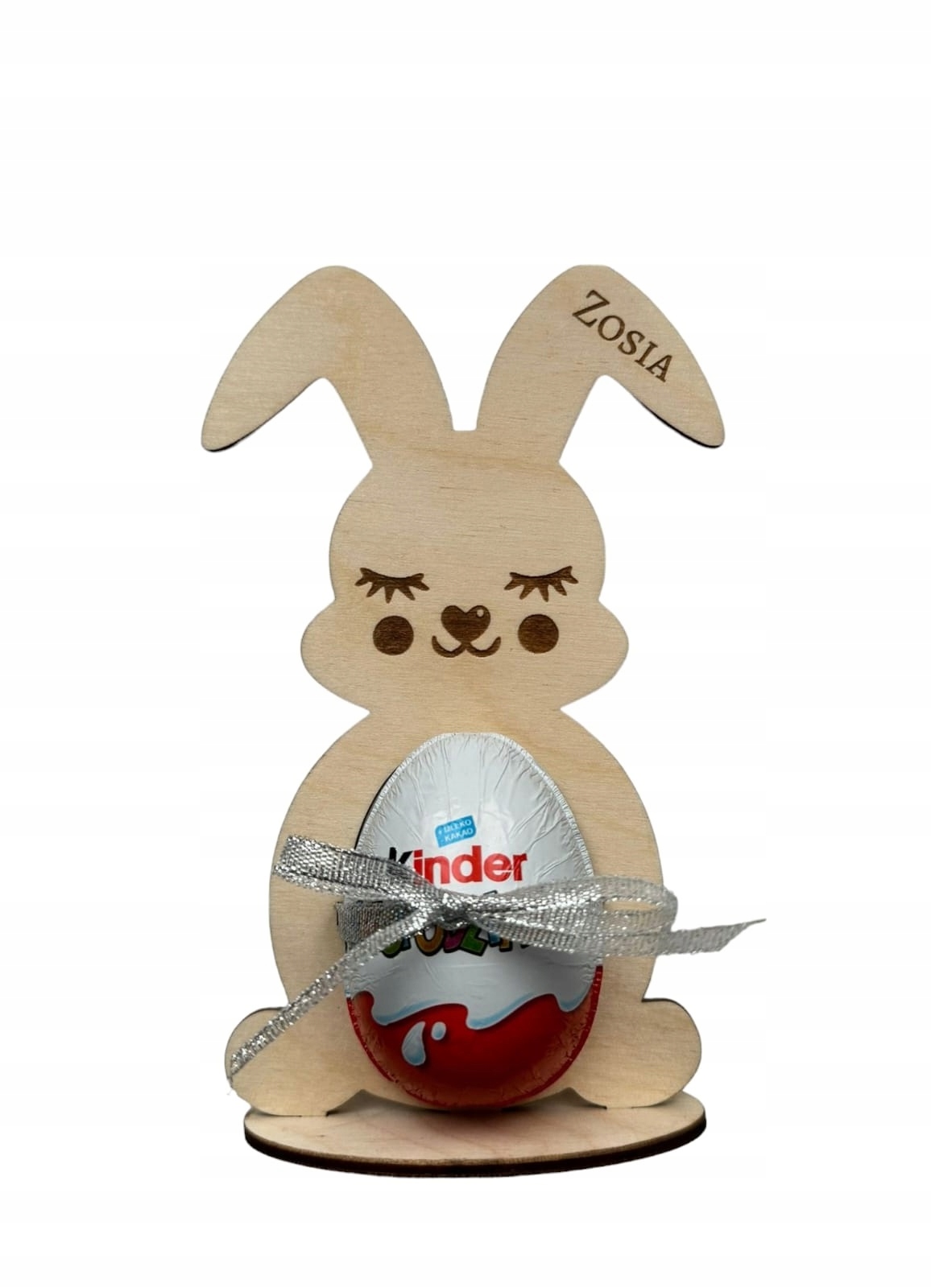 Wyjątkowy zajączek wielkanocny na jajka KINDER NIESPODZIANKI z personalizowanym wygrawerowanym imieniem.