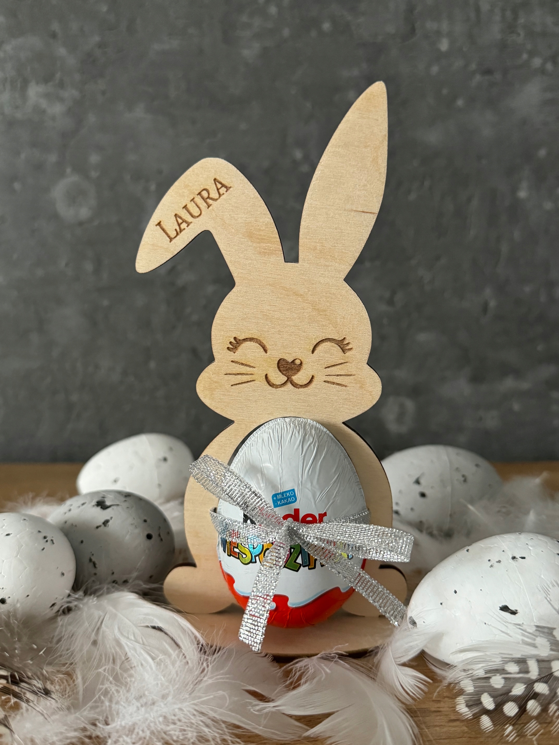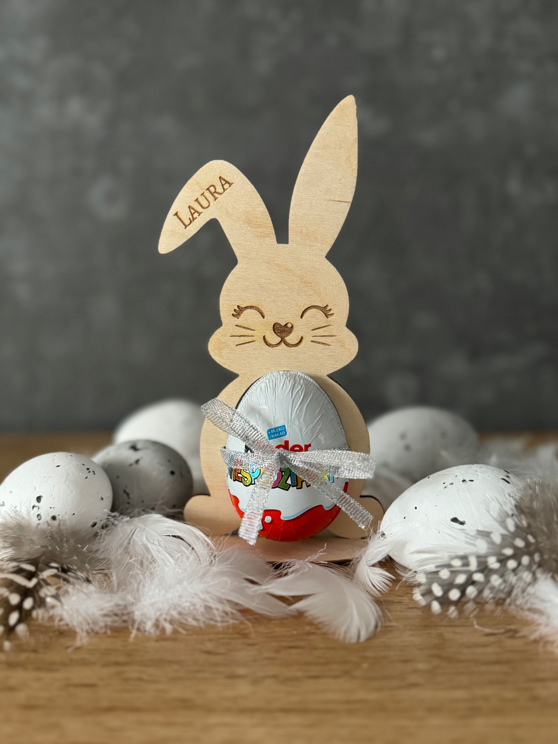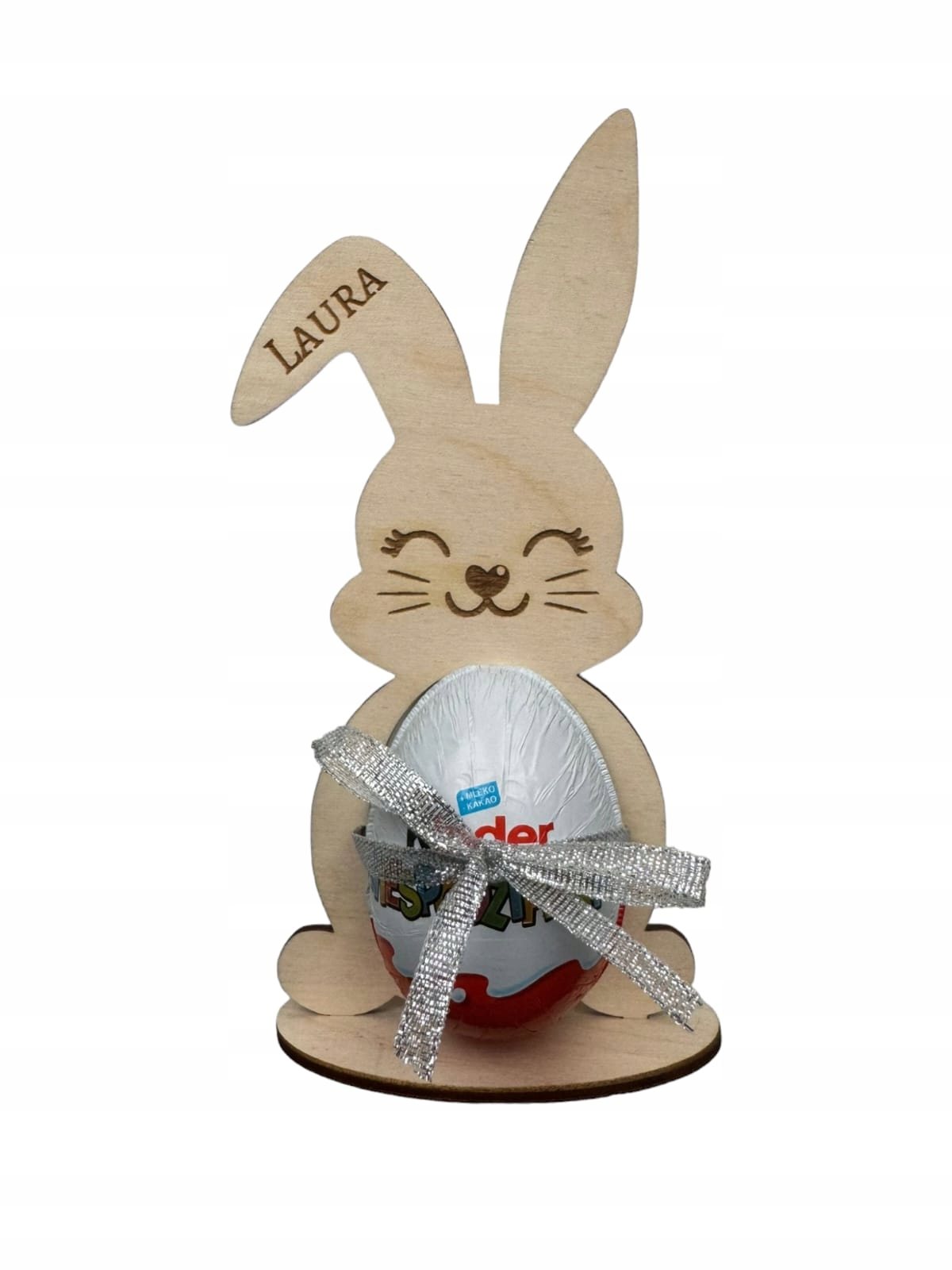 Wyjątkowy zajączek wielkanocny na jajka KINDER NIESPODZIANKI z personalizowanym wygrawerowanym imieniem.