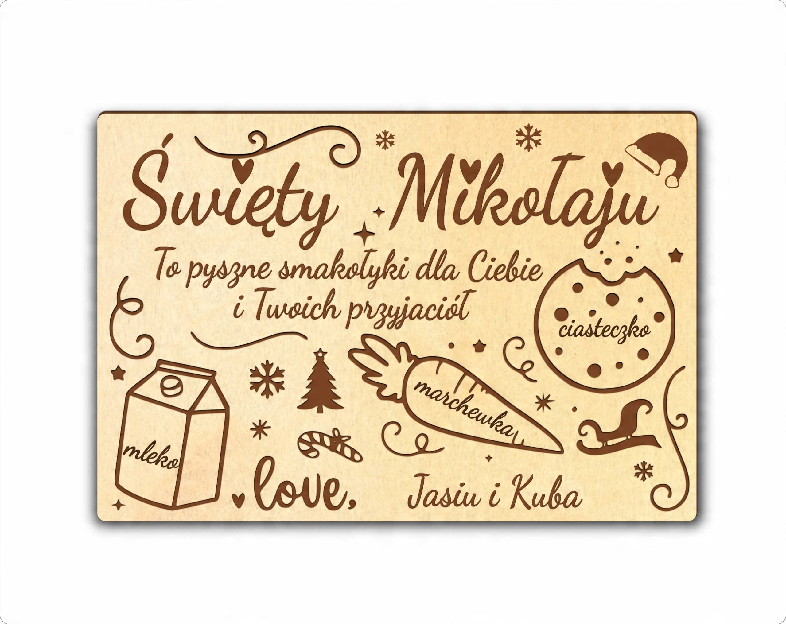 Drewniany talerz dla Św. Mikołaja pod choinkę z imieniem dla Twojego dziecka!