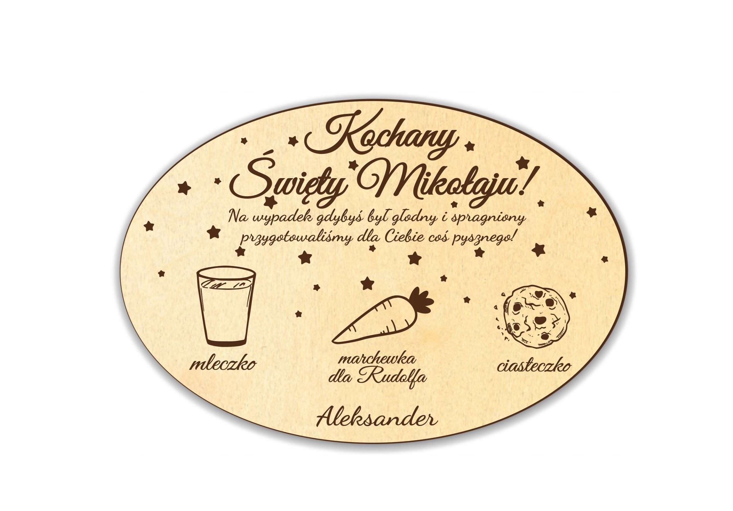 Drewniany talerz dla Św. Mikołaja pod choinkę z imieniem dla Twojego dziecka!