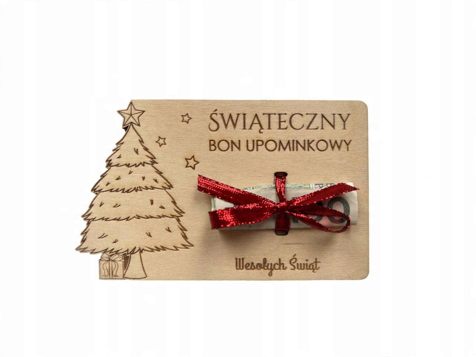 Czasami możliwość samodzielnego wyboru prezentu to najlepszy prezent , ale co zrobić by pieniądze nabrały nieco świątecznego klimatu? Najlepiej je przyozdobić w tematyczny sposób np. przywiązując je na VOUCHER KARTA lub BON PODARUNKOWY wykonany z DREWNA. Podarowanie pieniędzy w taki sposób to na pewno nie będzie „pójście na łatwiznę”, a tego rodzaju prezent zostanie w pamięci bliskiej Ci osoby.